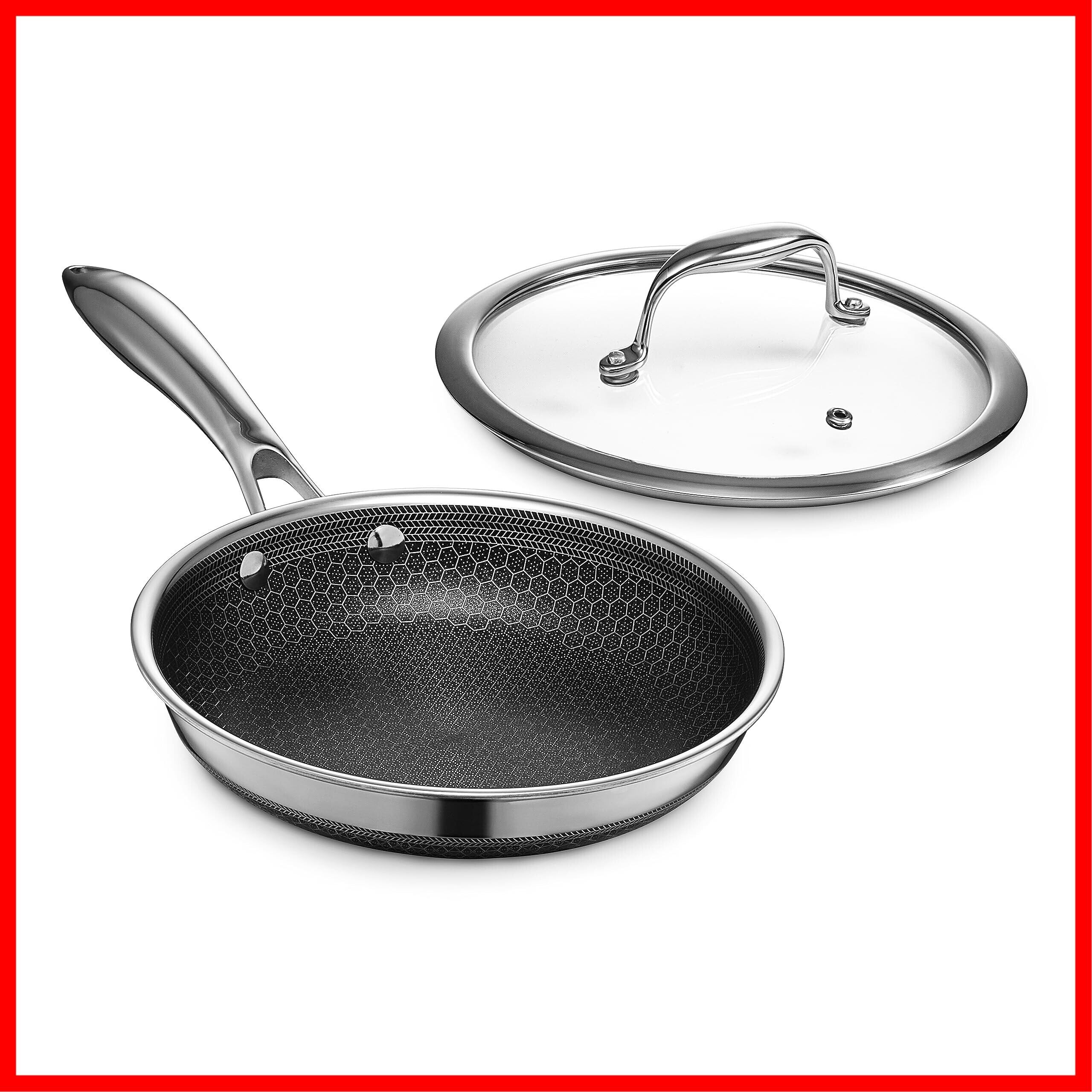 HexClad ハイブリッド ノンスティック フライパン 【20cm】 [焦げ付き防止加工] IH/オーブン/食洗器 対応 (直販限定 付き) [ヘックスクラッド] 強化ガラス 蓋付き | hananoki