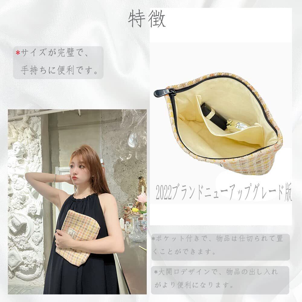 化粧ポーチ レディース メイクポーチ コスメポーチ 大容量 かわいい おしゃれ 四角 収納ポーチ 持ち運び 旅行用 (赤と黄の格子)
