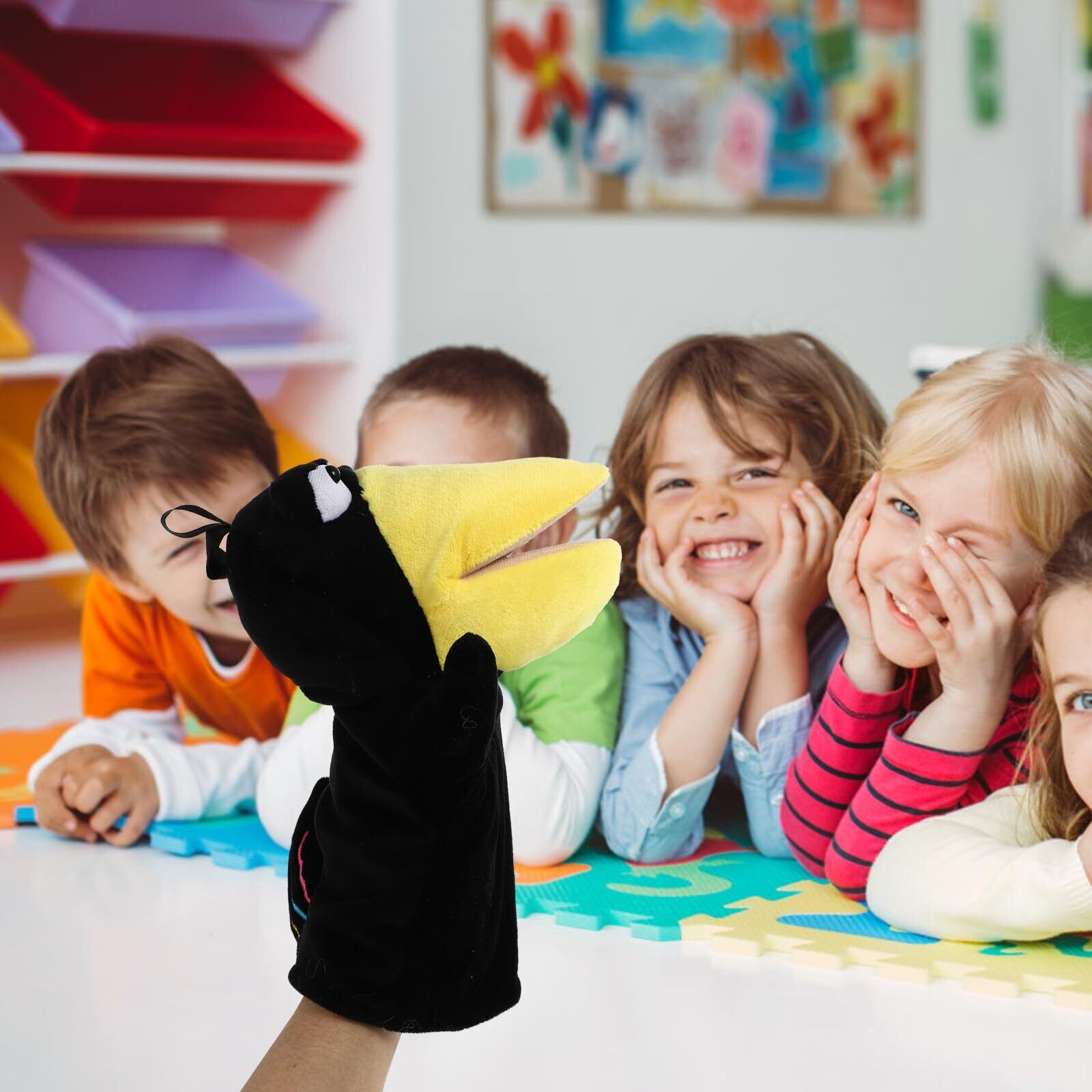 ぬいぐるみパペット カラス ハンドパペット キツネ 指の おもちゃ 動物 かわいい 腹話術 手踊り 劇パペット ハロウィン/クリスマス/誕生日プレゼント