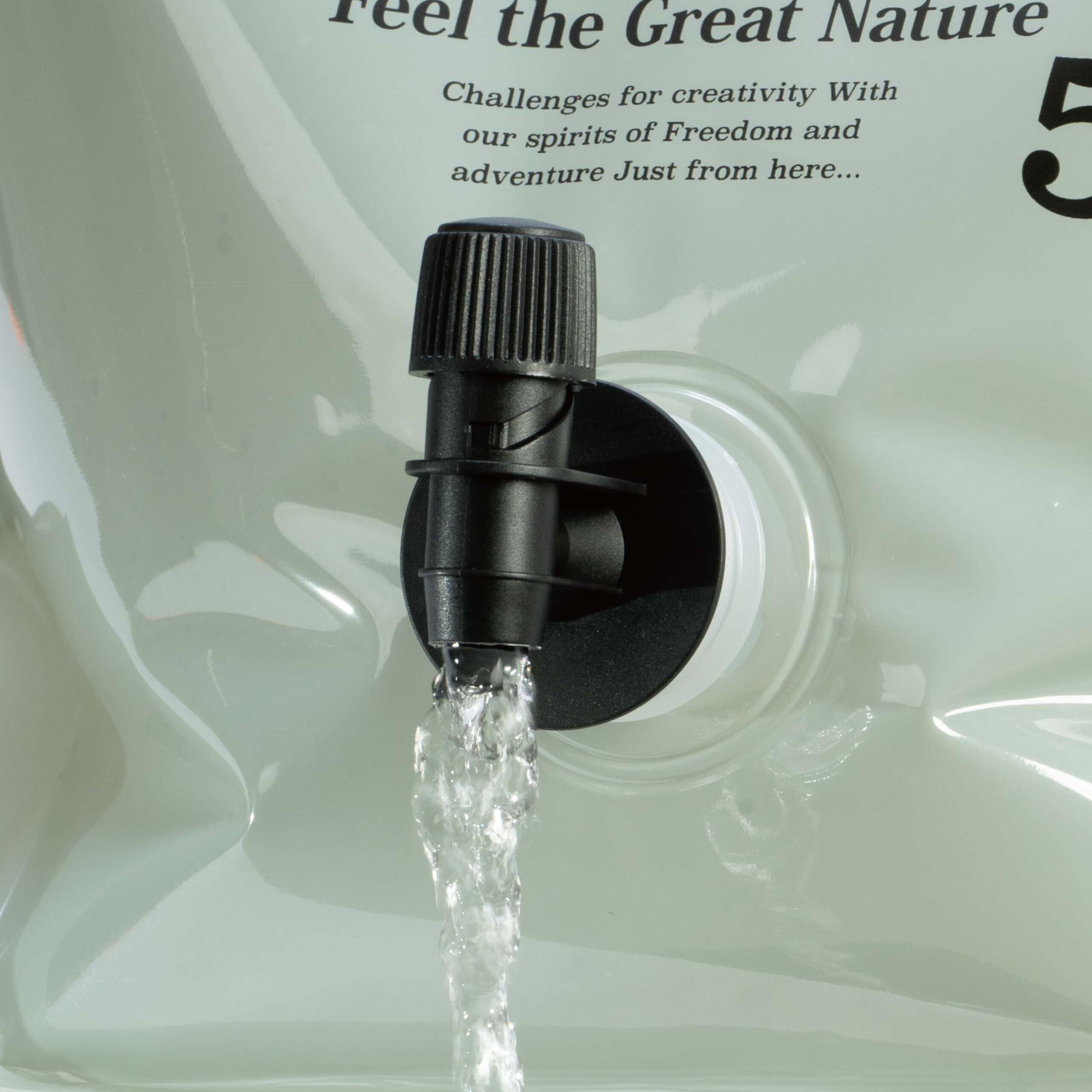 材質:本体/ポリエチレンテレフタラート+ポリアミド+ポリエチレン(3層)、持ち手・コック/ポリプロピレン、コック取付口・給水口・蓋/ポリエチレン、原産国:中国