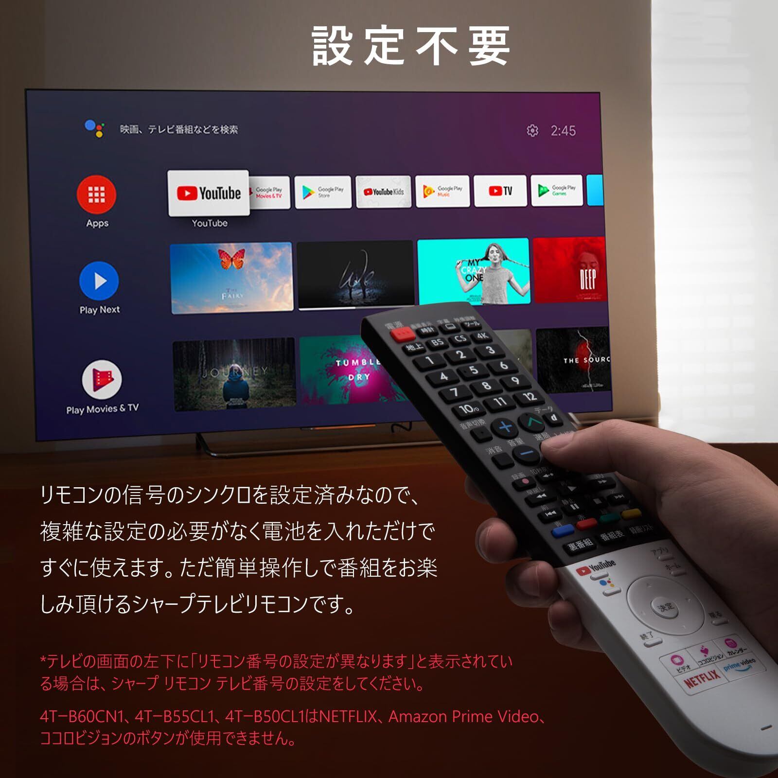 【違反感がなく使える】純正のシャープ製リモコンの全部ボタン表示と配置をほとんど踏襲しており、使っていて違和感がありません。NETFLIX、prime video、YouTubeアブリダイレクトがあり、それを直接起動することができます。Google アシスタント ボタンは音声認識機能があります。しかし、4TーB60CN1、4TーB55CL1、4TーB50CL1はNETFLIX、 Prime Video、ココロビジョンのボタンが使用できません。