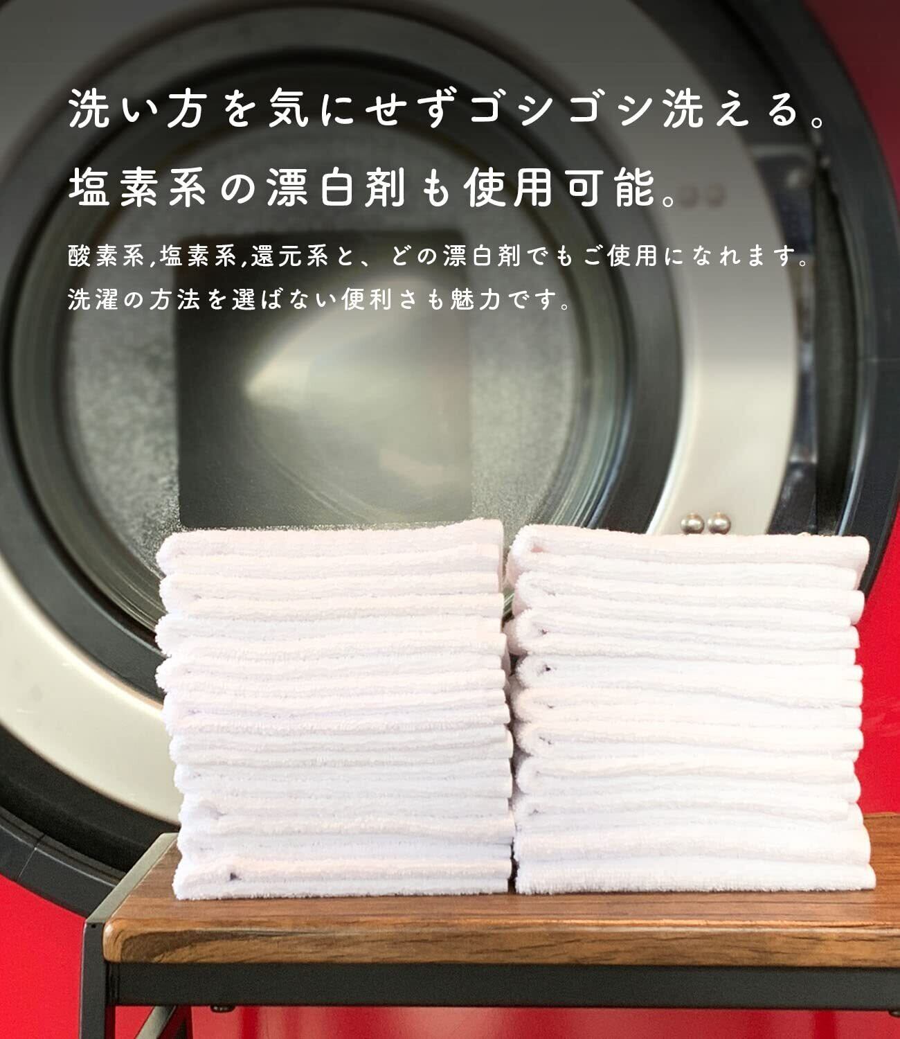 【洗濯方法も選ばない】漂白をして洗濯する場合は塩素系、酸素系、還元系のどの漂白剤でもご使用になれます。洗濯方法を選ばない丈夫なタオルですので、長く愛用していただけると幸いです。