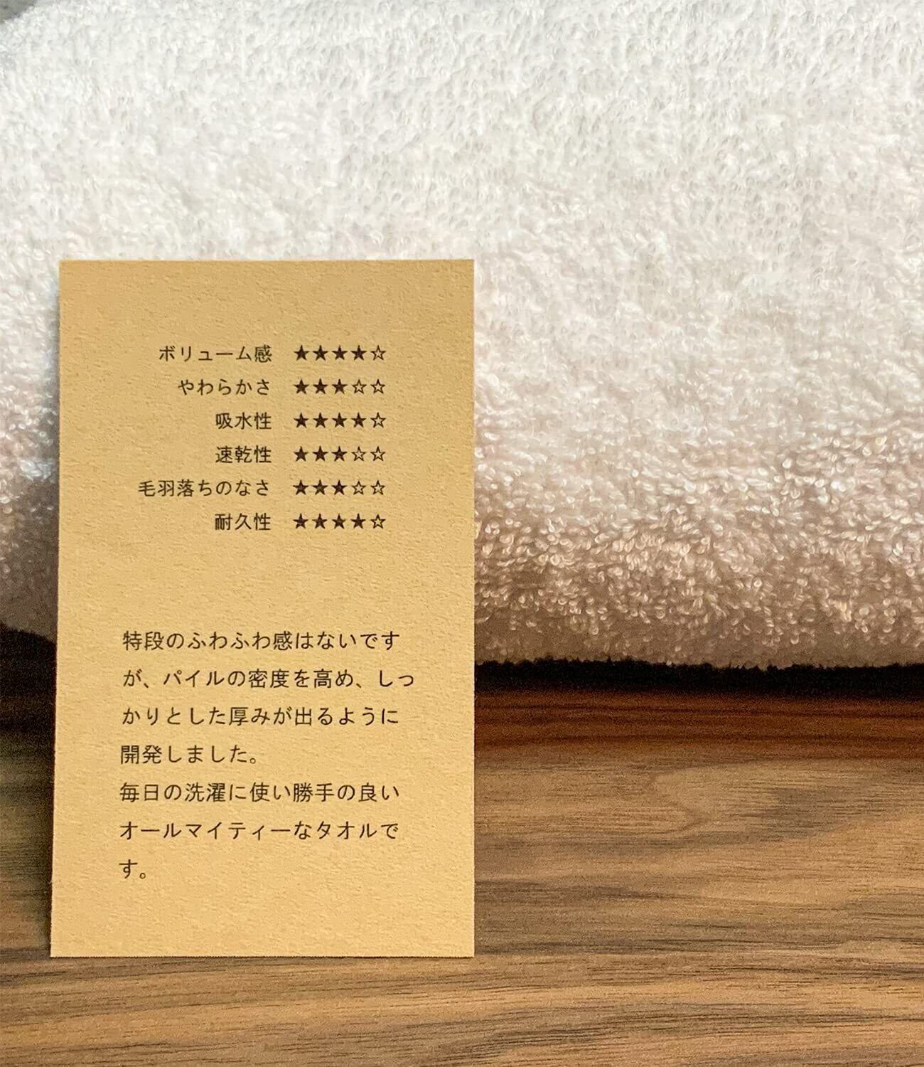 【しっかり厚手】ハンドタオルにちょうど良い厚みを考えました。あまりフカフカすぎるのも、ペラペラ過ぎるのも拭いた感じがよくありません。心地よく拭ける厚みを追求した結果、毛羽の密度を高めてしっかり拭ける厚みにしました。