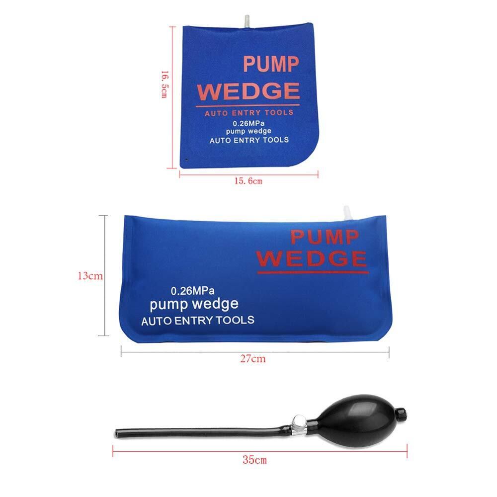 【使用簡単】:ドアの隙間や内張りの隙間等に差込んで、ポンプでエアーを送って、膨らますだけで、外し たりこじ開けたり出来ます。ドアやウインドーを傷つけず解錠工具の差し込むすき間を作る用具。
