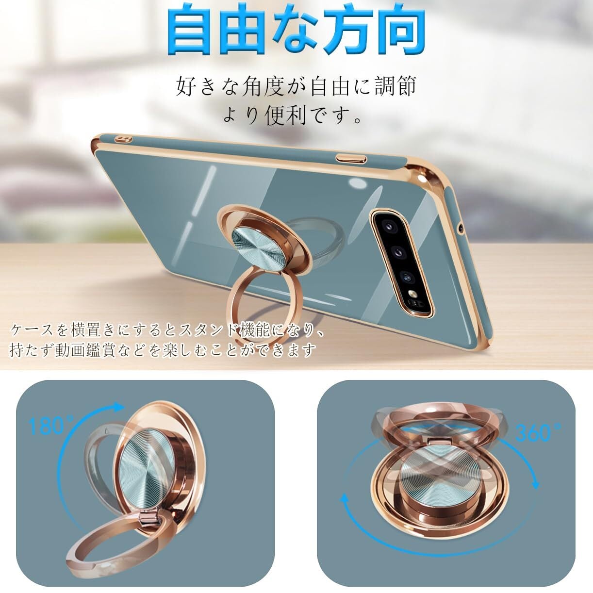 Galaxy S10 ケース リング付き SC-03L SCV41 ギャラクシーS10 リング カバー 耐衝撃 TPU 携帯カバー シリコン スタンド機能付き 360回転車載ホルダー(グレーブルー) | hananoki