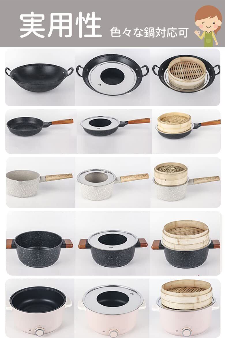 【効率性の向上】蒸気口が広いので蒸しセイロの効率が良く、料理の制作時間を短縮できます。また、さまざまなタイプの鍋に適応し、蒸し料理を簡単に調理できるようになっています。