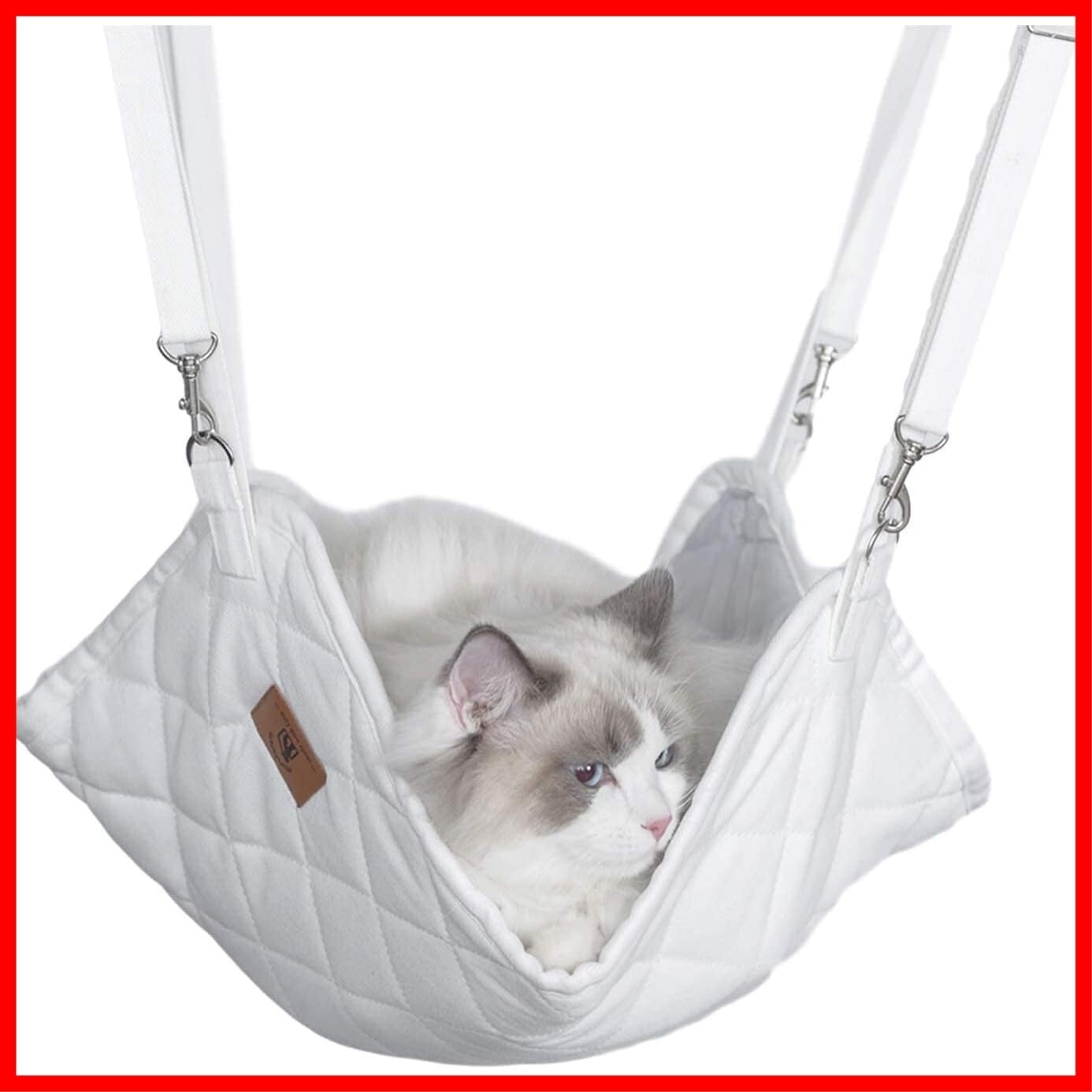 PEOPLE&PETS 猫ハンモック吊り下げベッド ケージ リバーシブル 長さ調節可 冬夏両用 50x45cm 10 kgまで キルト仕様 ホワイト