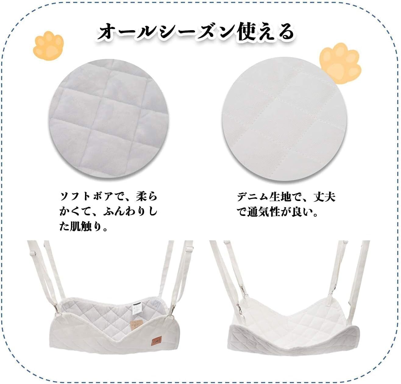 【オールシーズン通用】このハンモックは一面が綿製デニム生地で、通気性、快適性に優れています。丈夫でペットちゃんの引っかきにも耐えられます。もう一面がグレーのソフトボア生地で汚れにくく、柔らかくて、ふんわりした肌触りです。リバーシブル仕様で、オールシーズン使える製品です。