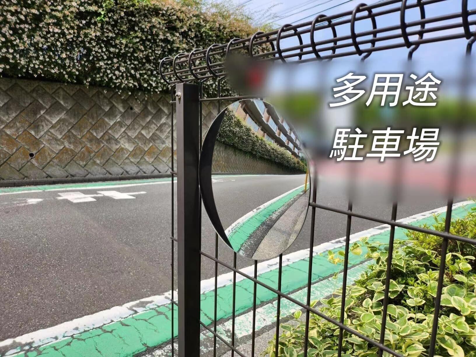 【駐車場ミラー】ガレージミラーとして、見える範囲が広く、ガレージ周辺の死角を確認できる。車が出る時の安全確認に!