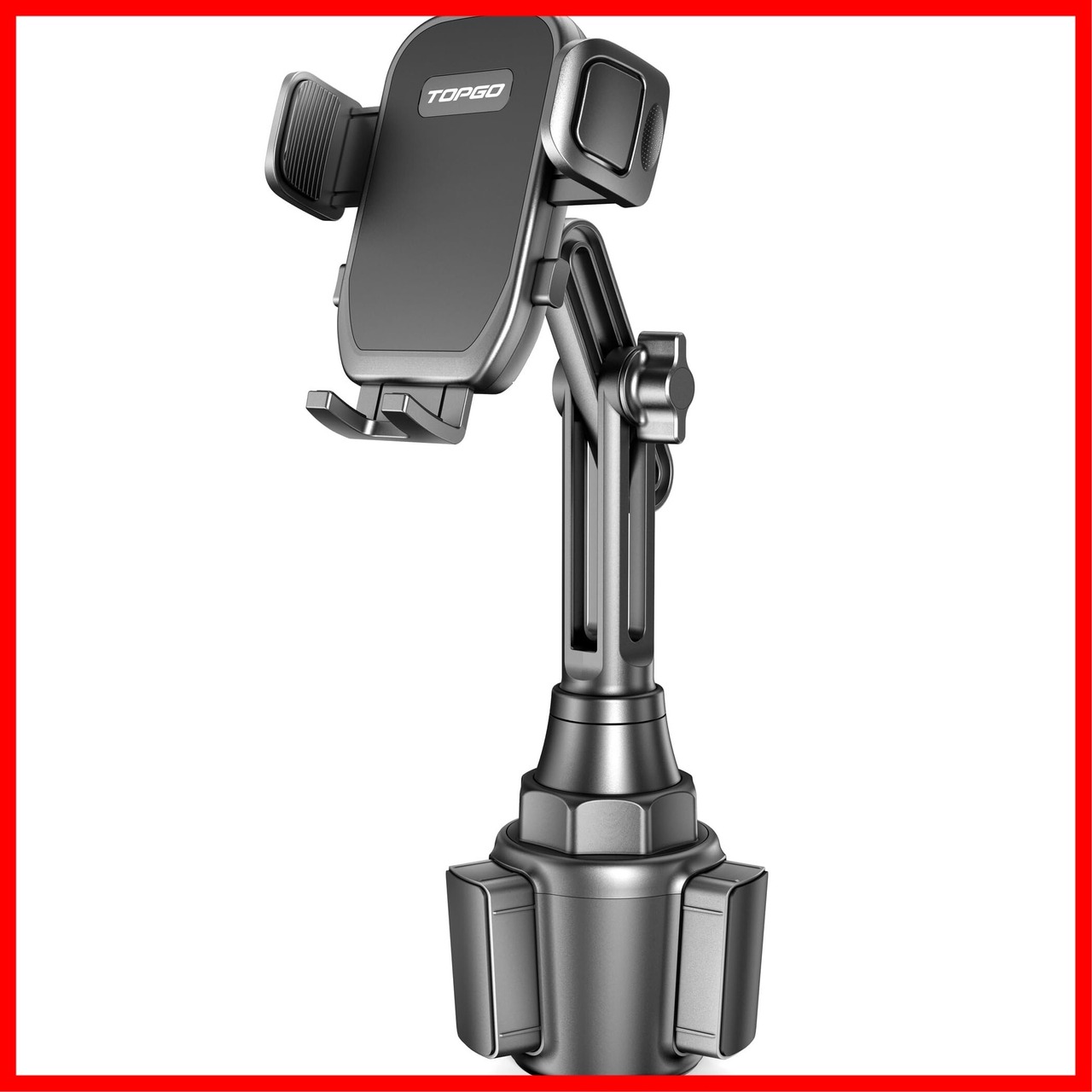 TOPGO スマホホルダー 車 ドリンクホルダー 車載ホルダー カップホルダー スマホスタンド 車 【 機械式伸縮延長ポール 車載 携帯ホルダー 縦・横・上下・左右自在調節 iPhone 14 Pro Max/Galaxy S23 Ultra 多機種対応(ブラック)