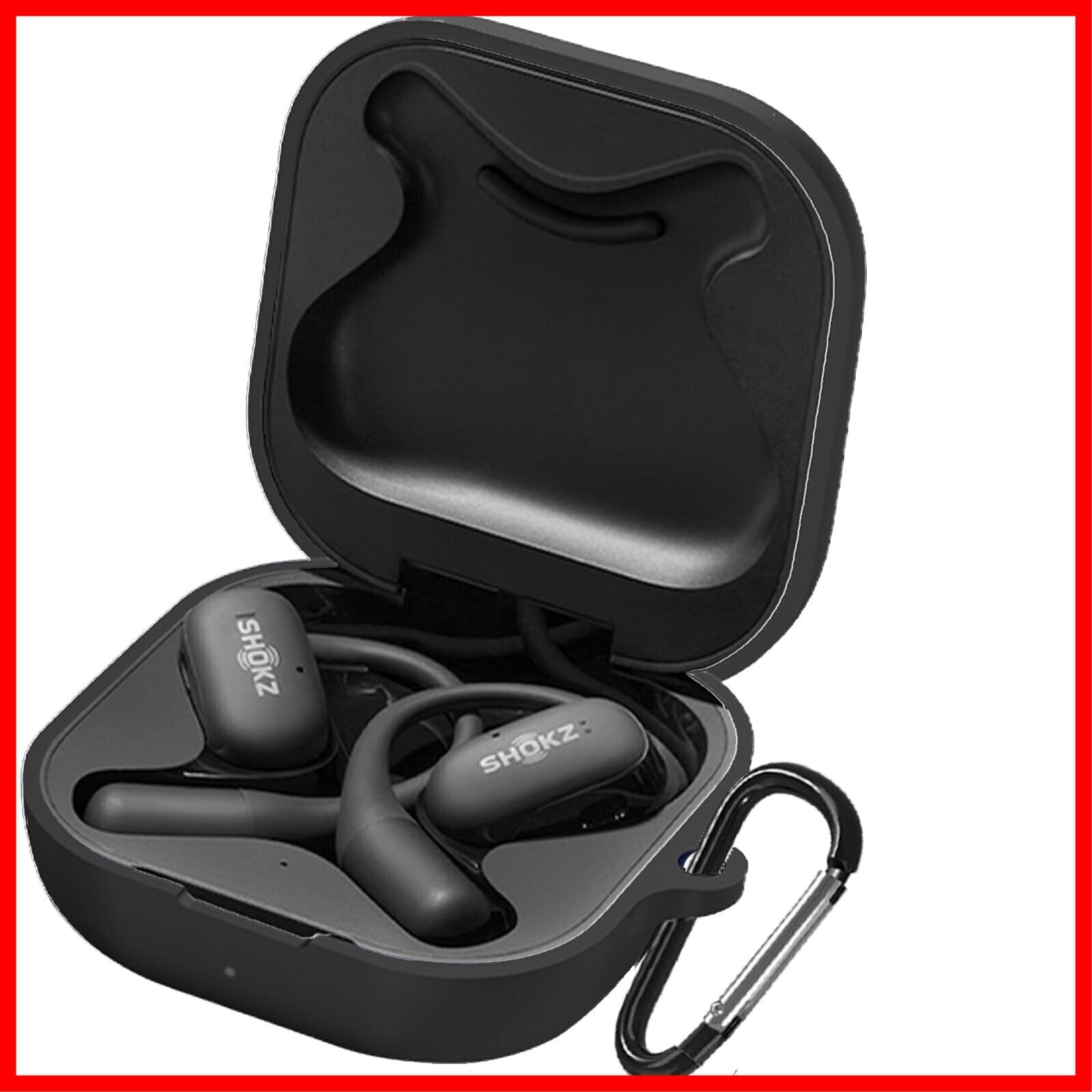 Shokz OpenFit 用 ケース カバー Shokz OpenFit用保護カバー 保護ケース シリコンケース 装着充電可能 全面保護 落下防止 キズ防止 耐衝撃 防塵 軽量 収納 カラビナ付き(Shokz OpenFit,ブラック) | hananoki