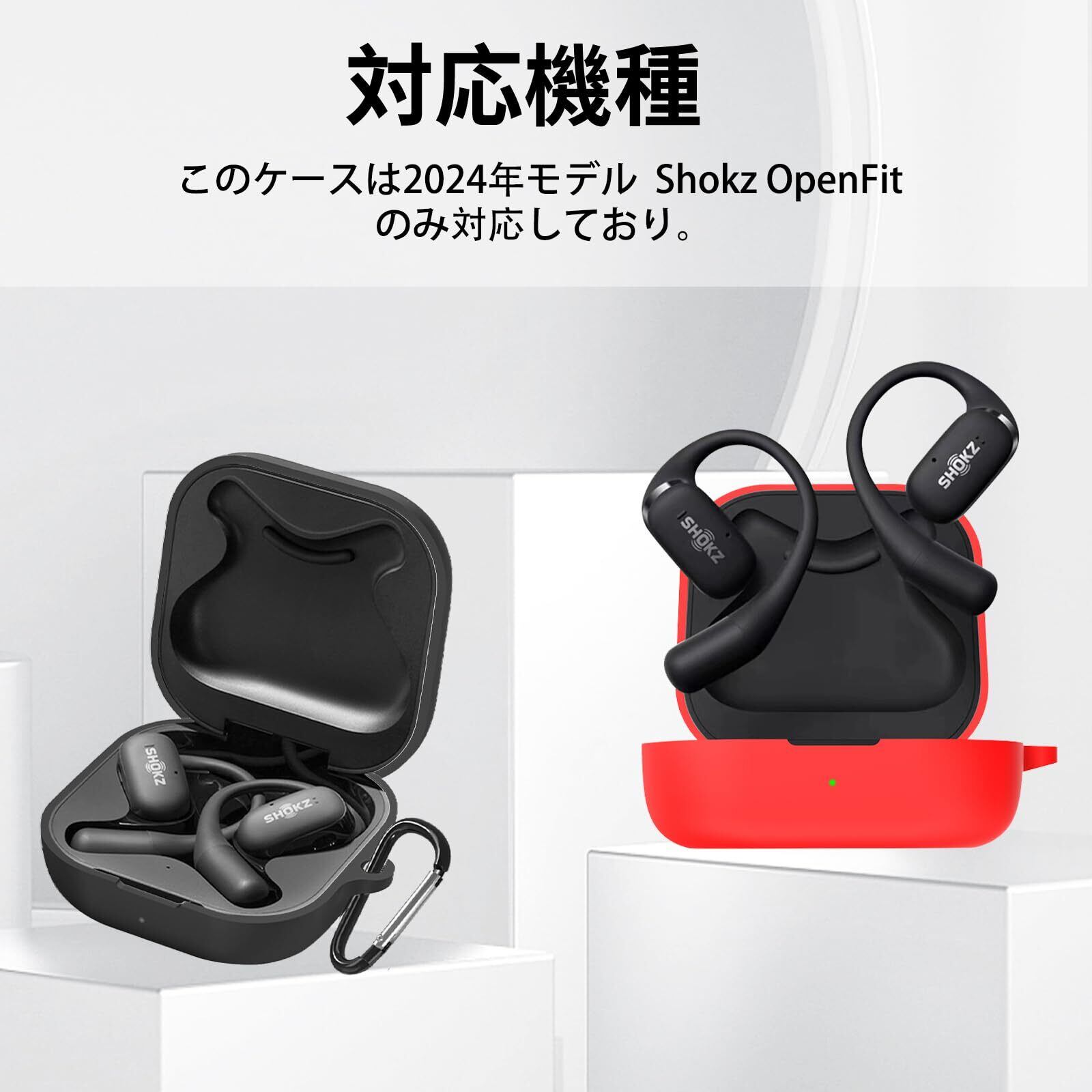 Shokz OpenFit 用 ケース カバー Shokz OpenFit用保護カバー 保護ケース シリコンケース 装着充電可能 全面保護 落下防止 キズ防止 耐衝撃 防塵 軽量 収納 カラビナ付き(Shokz OpenFit,ブラック)