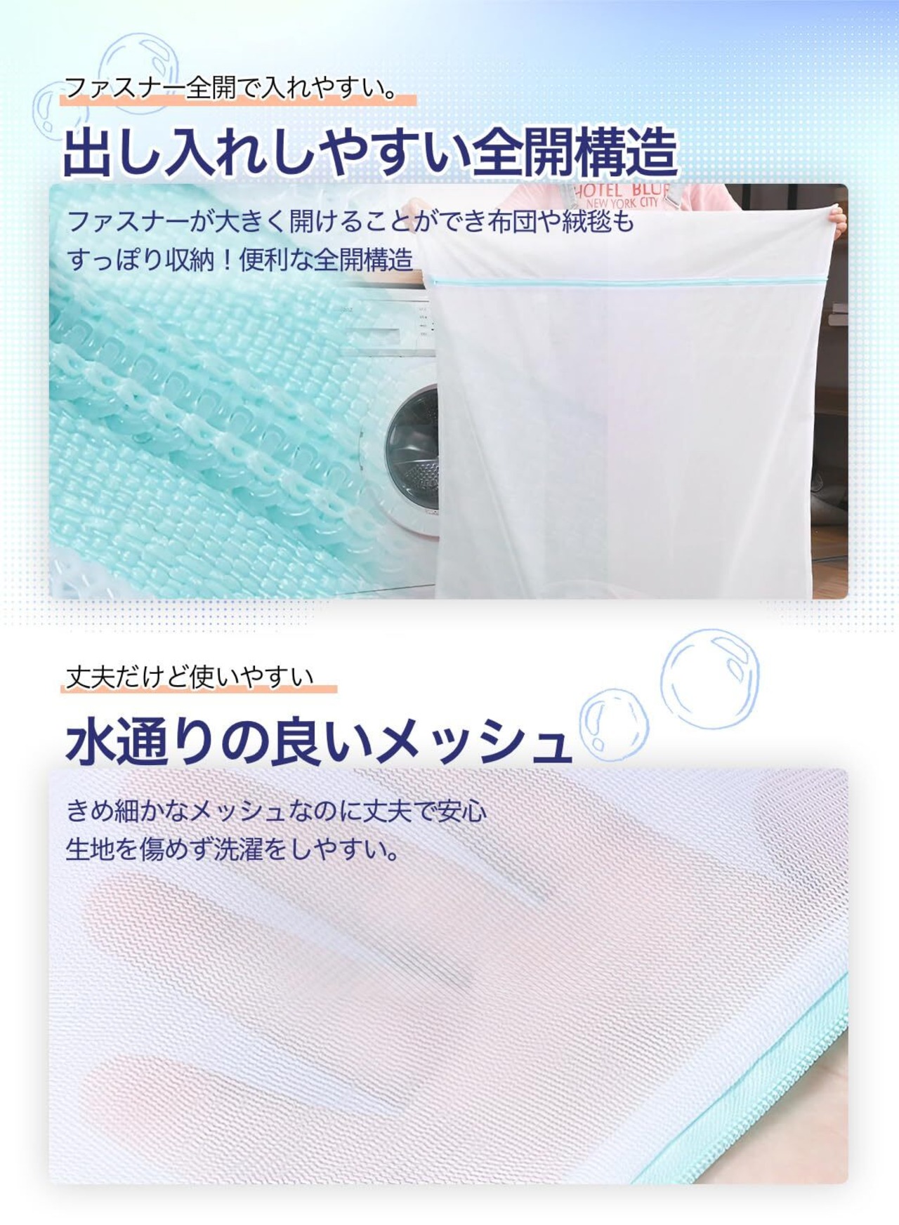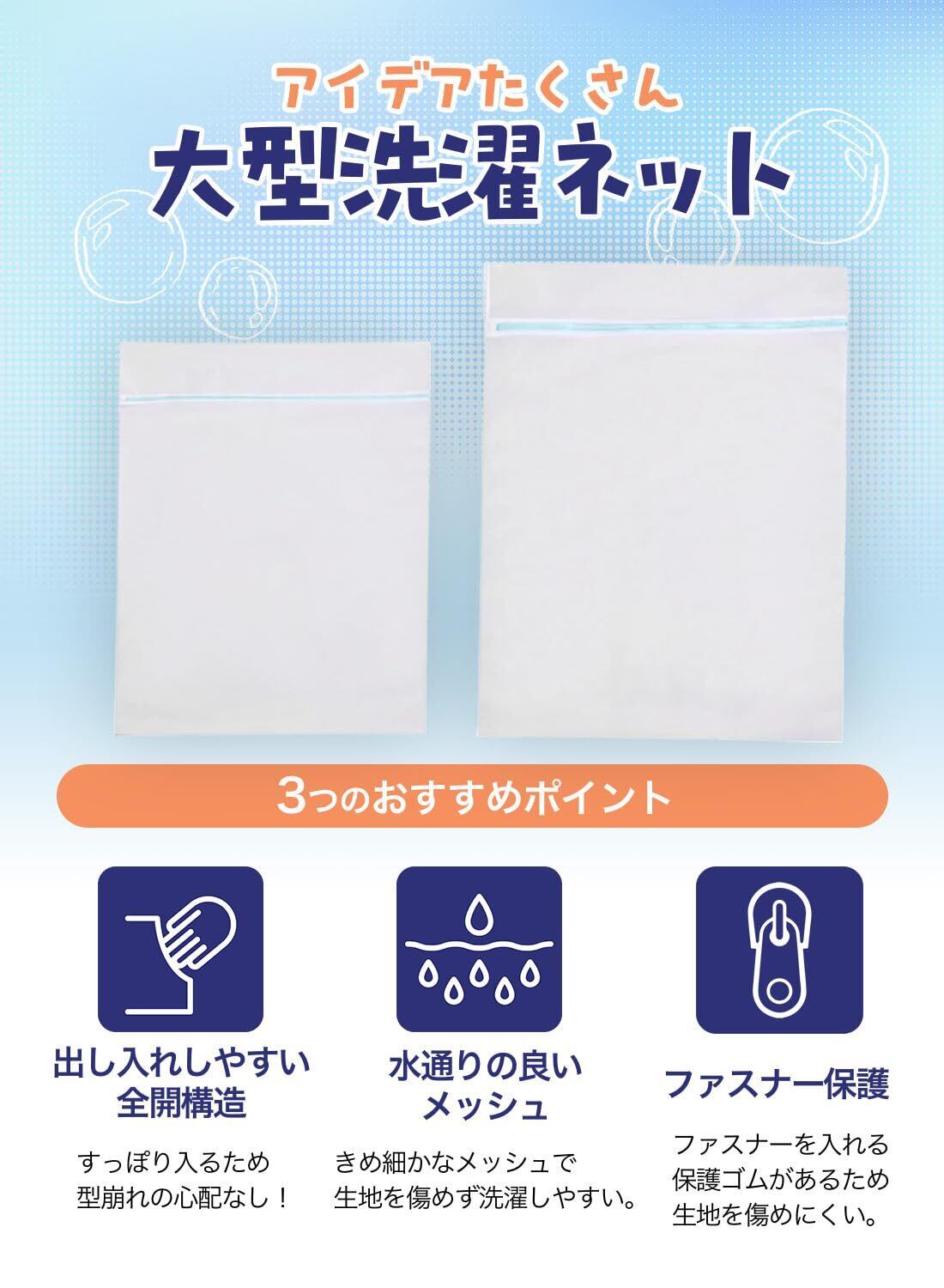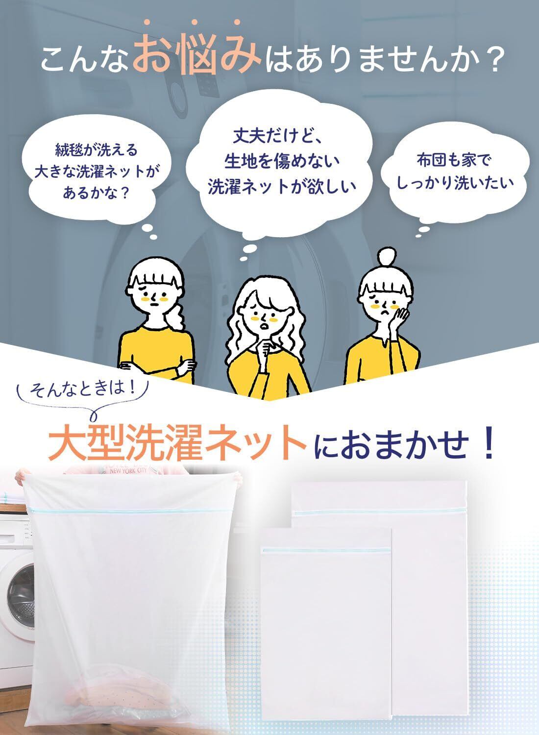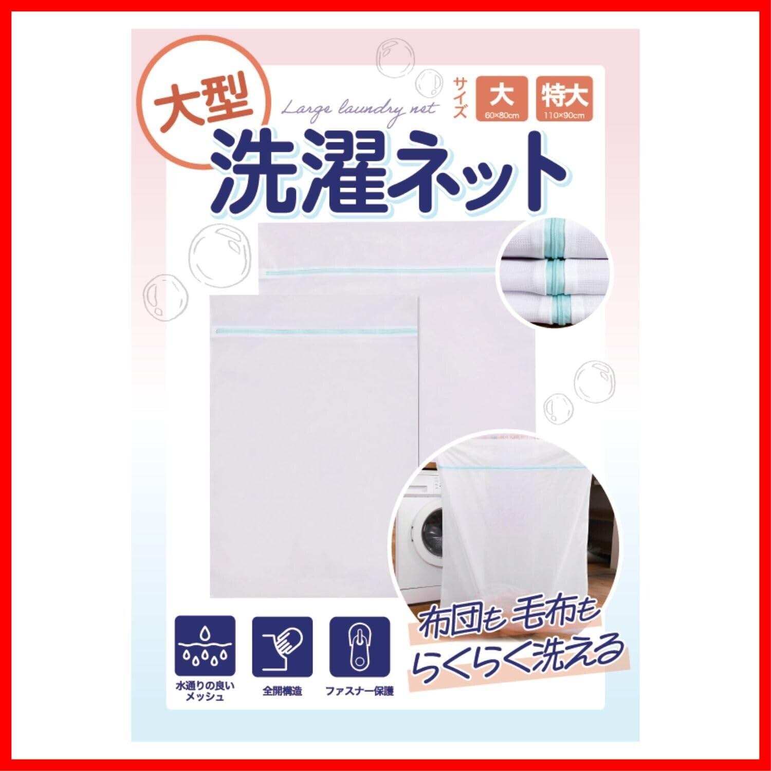 洗濯ネット 【布団や絨毯などが洗える大型サイズ】ランドリーネット 毛布 カーテン (2枚組 特大サイズ1枚 大サイズ1枚)