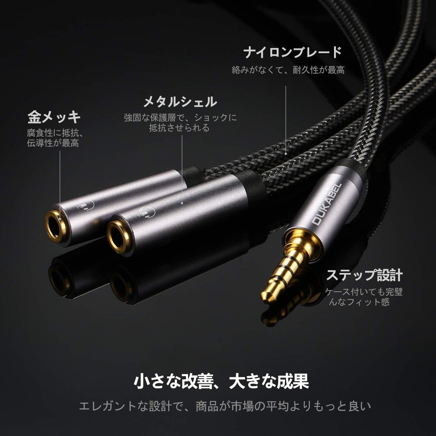 DuKabel 2分配 ケーブル オーディオ分配ケーブル 4極3.5mmステレオオーディオ(オス)⇔3.5mmステレオ(メス)×2分岐 イヤホンジャック 二股 イヤホン 分岐 TRRS マイクヘッドホン分配器 通話 (シルバー)