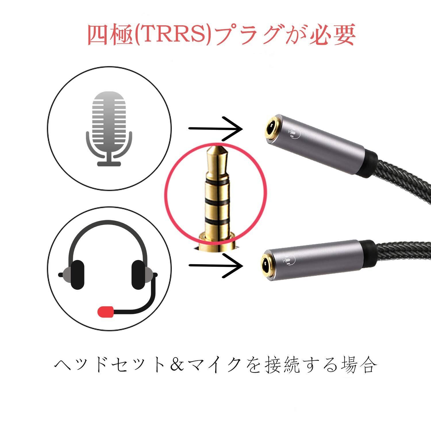 【マイク機能搭載】音声出力分岐コードですが、メス側がTRRS(4極)のマイクを接続する場合、通話も実現可能です。(※IOSスマホ/Mac/Xperiaを接続する場合、TRS三極マイクも入力不可;片方三極片方四極にはマイク使用不可となります。)