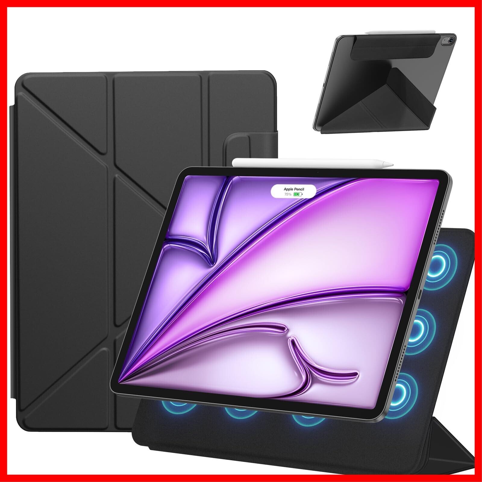iPad Air 11インチ ケース M2/M3 (2024/2025、第6/7世代)/iPad Air 第5/4世代(2022/2020)/iPad pro 11インチ ケース(2018)専用 横置&縦置 角度調整可能 三角形スタンド 強力マグネット吸着 Pencil対応 極薄 軽量 オートスリープ/ウェイク対応 (ブラック)