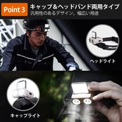 【180°角度調節可能】キャップクリップライトは、キャップやヘルメットに簡単に固定できます。帽子がない場合は、付属のヘッドバンドを使用して額に固定することもできます。スポットライトは180°の前傾角度調整が可能であり、パネルライトも90°まで上げることができます。どんな場所でも明るく調節可能な照明を提供します。