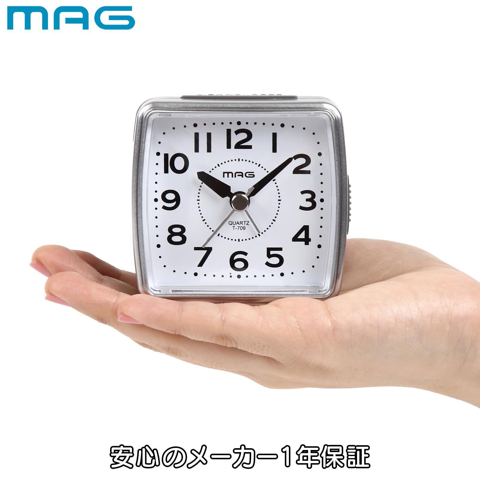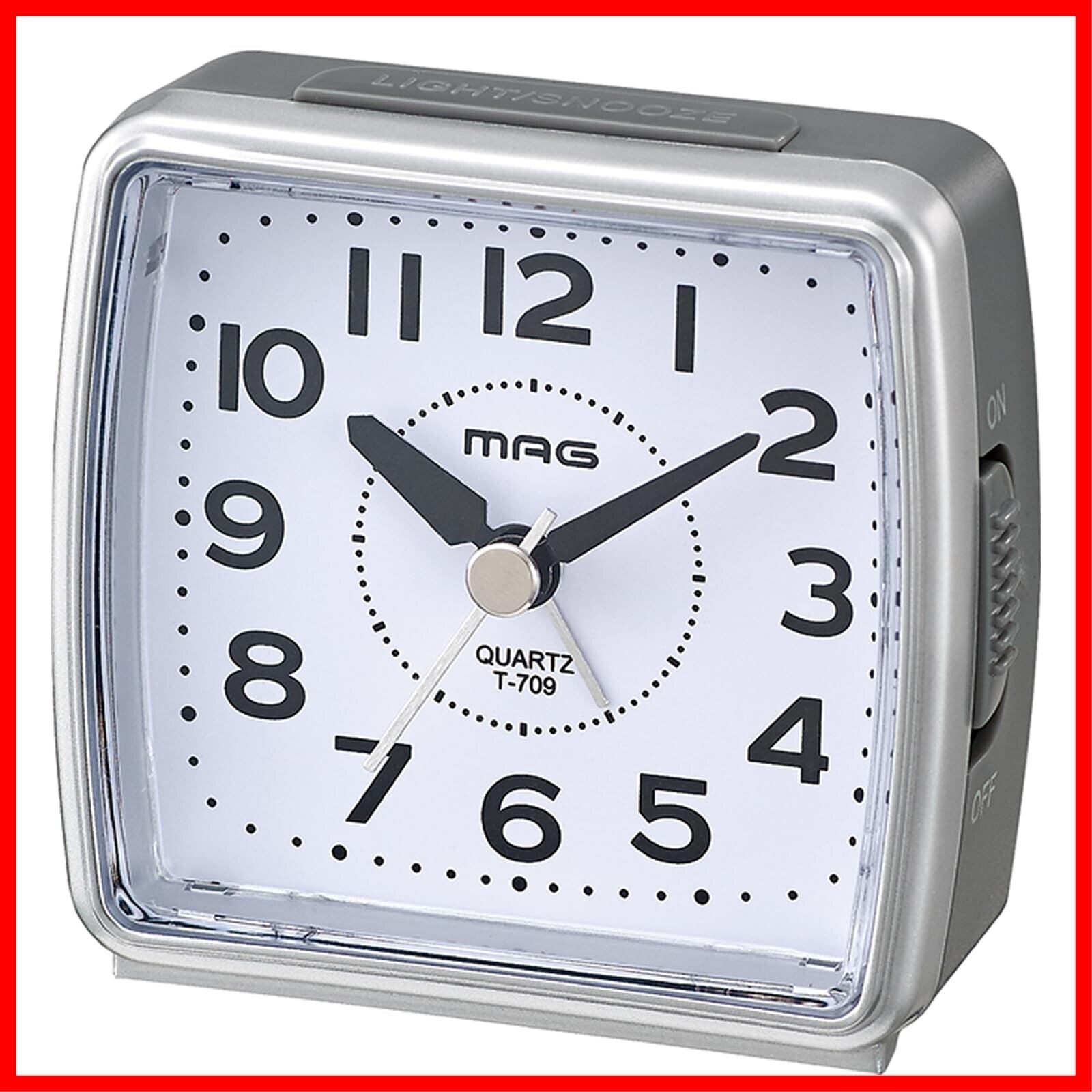 MAG(マグ) 目覚まし時計 置き時計 小型 小さい アナログ 静音 連続秒針 電子音 アラーム スヌーズ ライト シルバー 小次郎 T-709 SM ノア精密