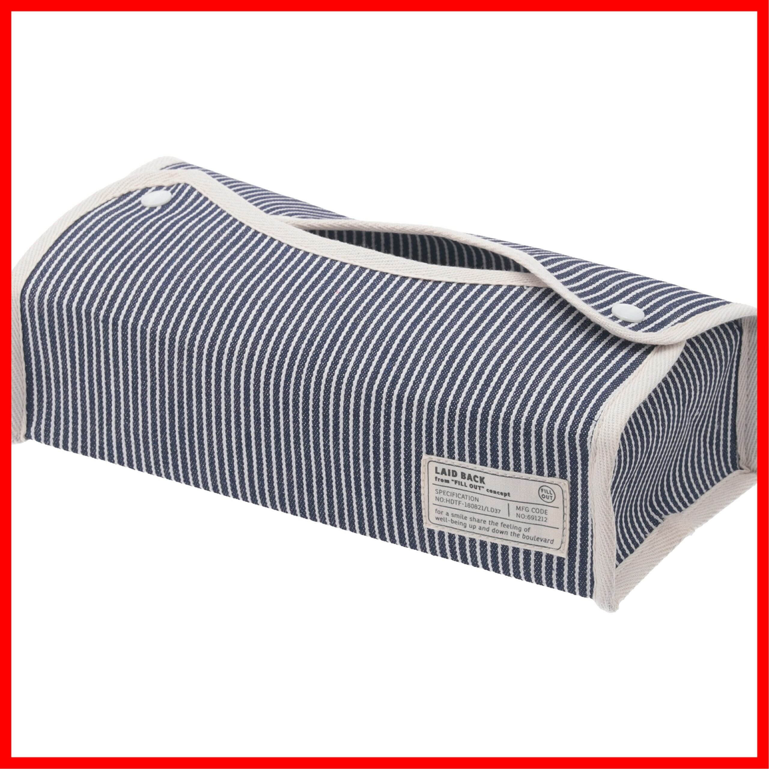 不二貿易(Fujiboeki) ティッシュケース カバー 幅27.5×奥行11×高さ6.5cm ネイビー レギュラーサイズ対応 吊り下げ可能 ヒッコリー LAID BACK 27624 | hananoki