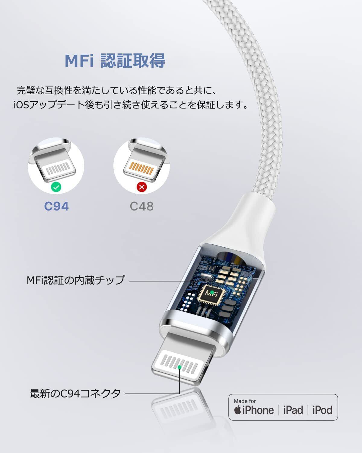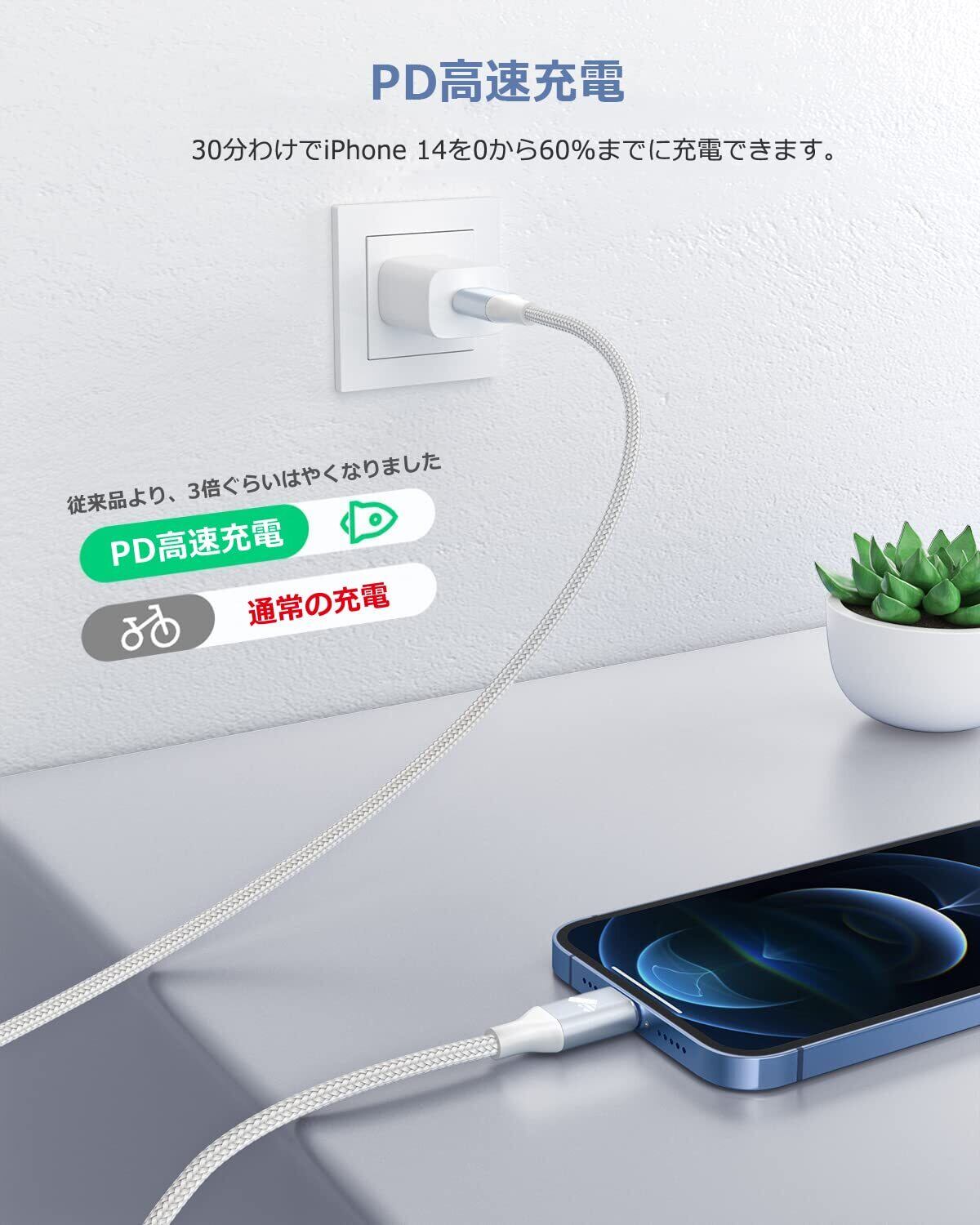 【▶▶幅広い互換性】Type C ライトニングケーブルは、iPhone 14/14 plus/14 Pro/14 Pro Max、iPhone 13/13 Pro/13 Pro Max/13 Mini、iPhone 12/12 Pro/12 Pro Max/12 Mini、iPhone 11/11 Pro/11 Pro Max、iPhone XS Max/XS/XR/X/8 Plus/8に高速充電します。iPhone 7/7 plus/6/6s/6s plusなどの機種は通常のスピードで充電できます。(USB-C充電器は別売りです。)
