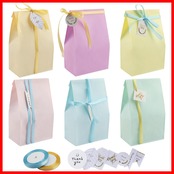 [TEMLUM] ラッピング袋 紙袋 ギフトバッグ 紙バッグ 包む 24枚セット シール付き リボン付き タグ付き 小サイズ 平袋 シンプル おしゃれ 可愛い 包装 リサイクル可能 誕生日 結婚式 収納 (マカロン色)
