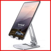折り畳み式 タブレット スマホ 兼用 スタンド ホルダー 角度調整 Lomicall iPad用 stand : アルミ 合金製 卓上 縦 横置き すたんど タブレット 置き台 YouTube 動画 テーブル デスク 持ち運び 4~13 インチ ipad 10 第十世代 ipad pro mini Air android huawei Galaxy に対応 - シルバー