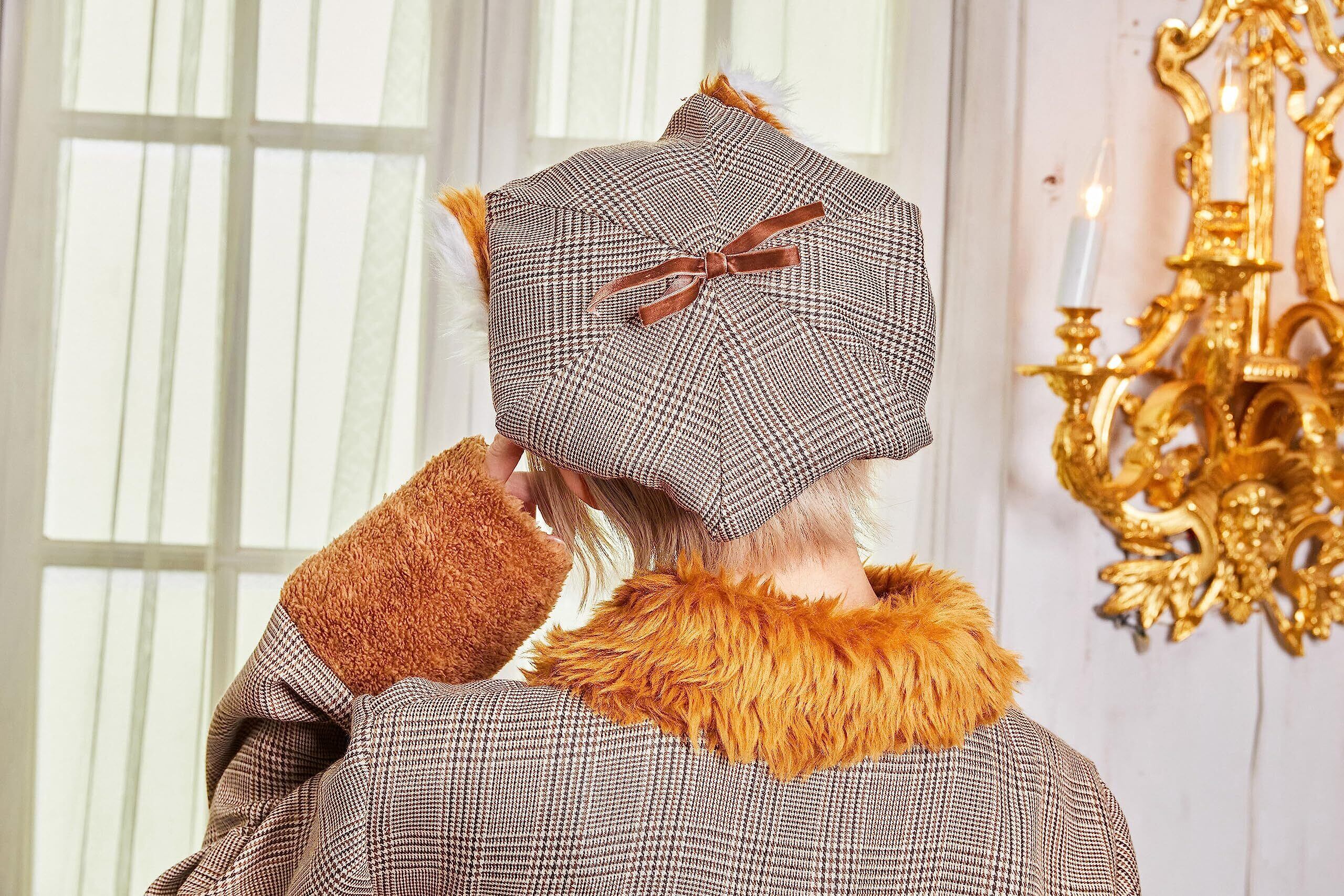 イギリス風のチェック生地とシャーロックハットのようなベレー帽でお洒落なきつね探偵になりきれます。