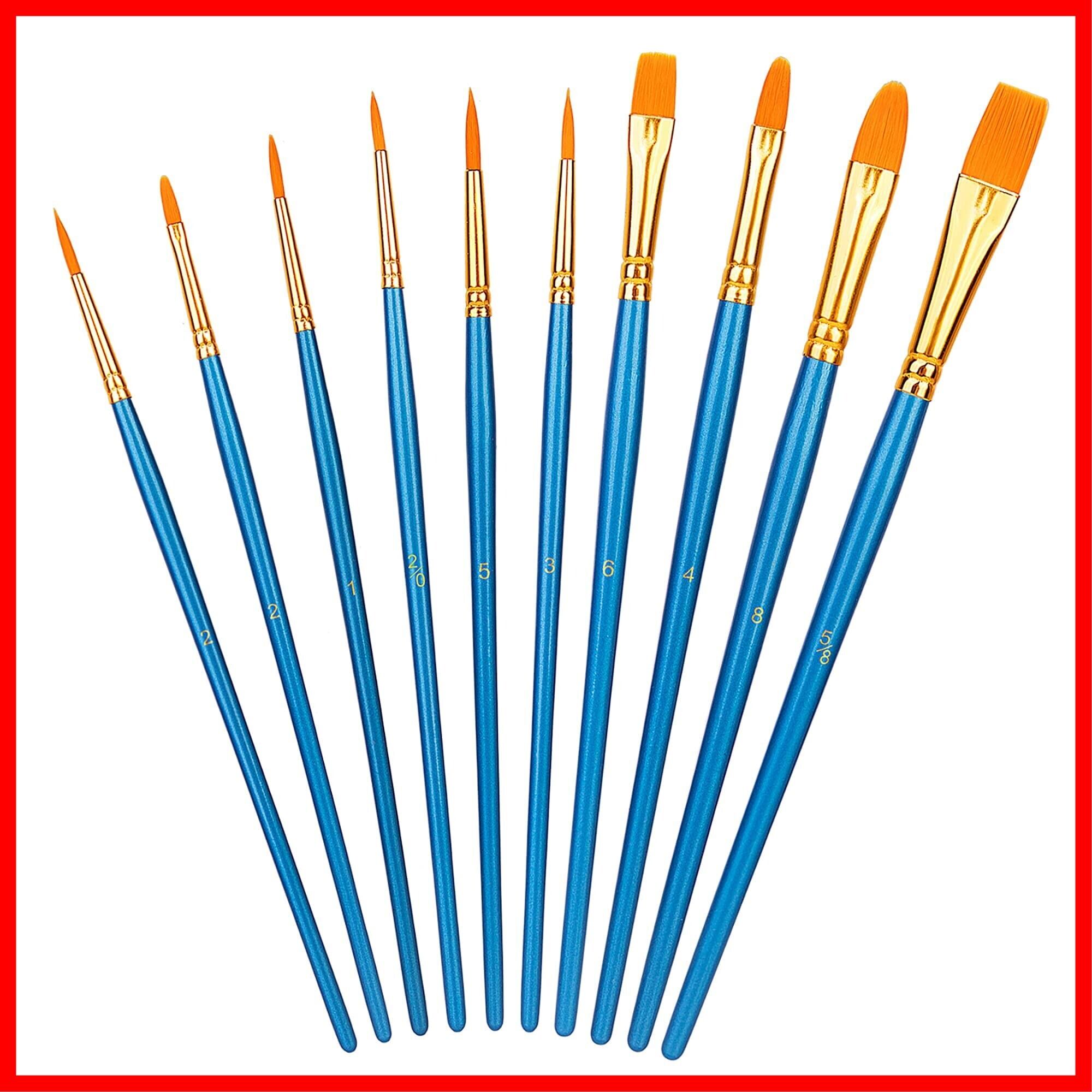 ベーシック 絵筆 水彩 油絵 アートペイントブラシセット PBT Blue アーティスト用 大人&子供用 10本入 17.5cm-19.5cm ブルー