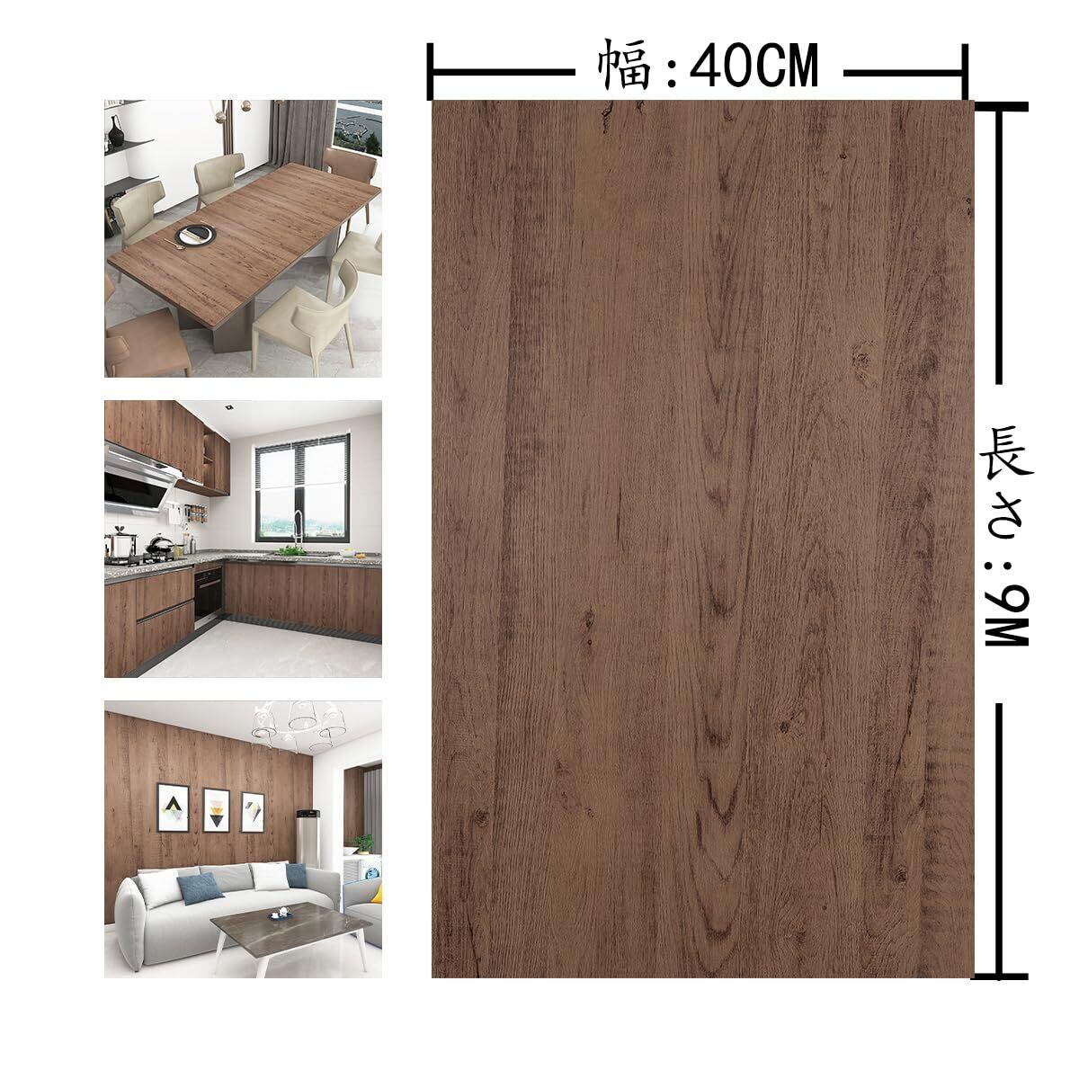 茶色 壁紙シール 幅40cm×長さ9m リメイクシート 木目 ダークブラウン ダイノックシート 玄関ドア用 木目調シール キッチンシート 防汚 防油 防カビ 耐熱 壁補修 家具リメイクシート 防水 シール壁紙 多用途 賃貸OK 装飾シート木目 調