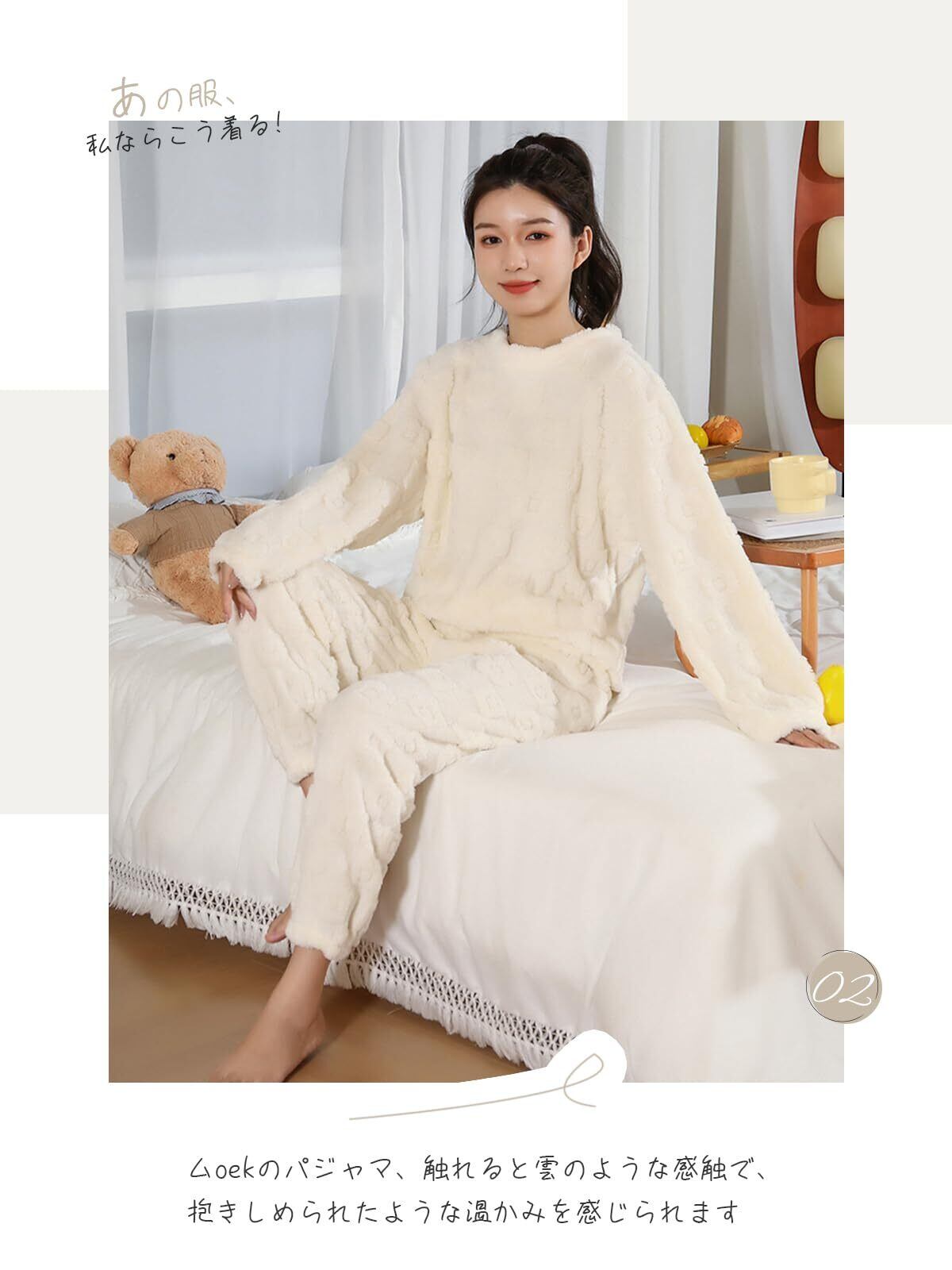 【スタイリッシュな外観、気品あふれる】この女性用の秋冬の绒のパジャマは、ミルクホワイトをメインカラーにとり、目立つテキストパターンを採用し、エレガントでファッション感あふれる印象を与えます。デザインはシンプルで large で、それを着用したら、家の中であろうが外で散歩を楽しむ時にあろうが、女性特有の魅力を発揮できます。これはパジャマであり、さらにお客様の品位の象徴でもあります。
