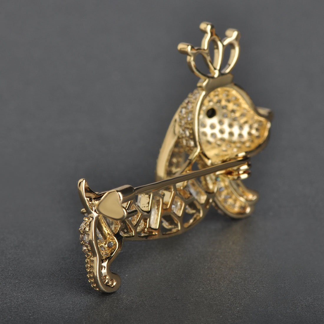 かわいい キラキラ クラウンをかぶる犬のブローチ ピン おしゃれ レデイース メンズ ピンバッジ 人気 コサージュ クリスタル ジルコン 上品 ゴールド 18k 金色 ダックスフント | hananoki