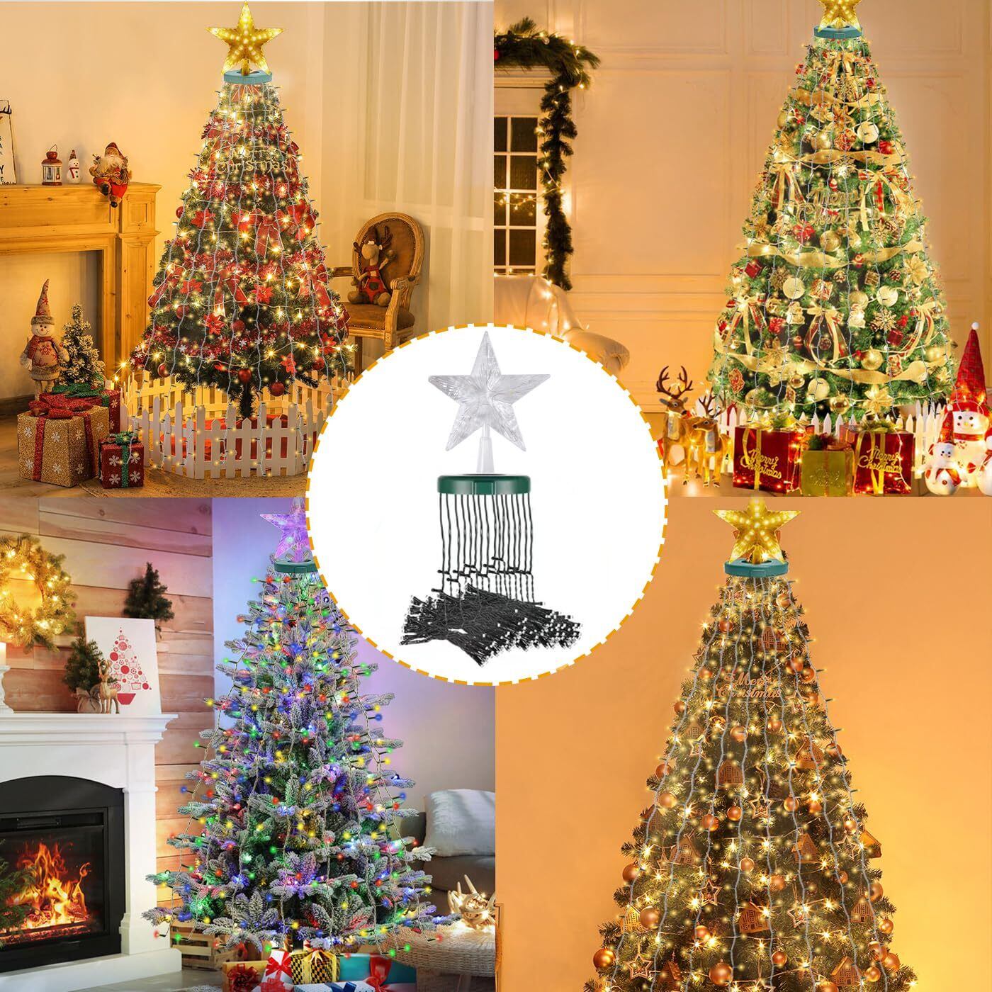 ❷取付簡単で手間が省け!ツリートップからクリスマスツリーを覆うように掛けるだけで取付完成で、クリスマスツリーライトを装飾する手間が省けます。