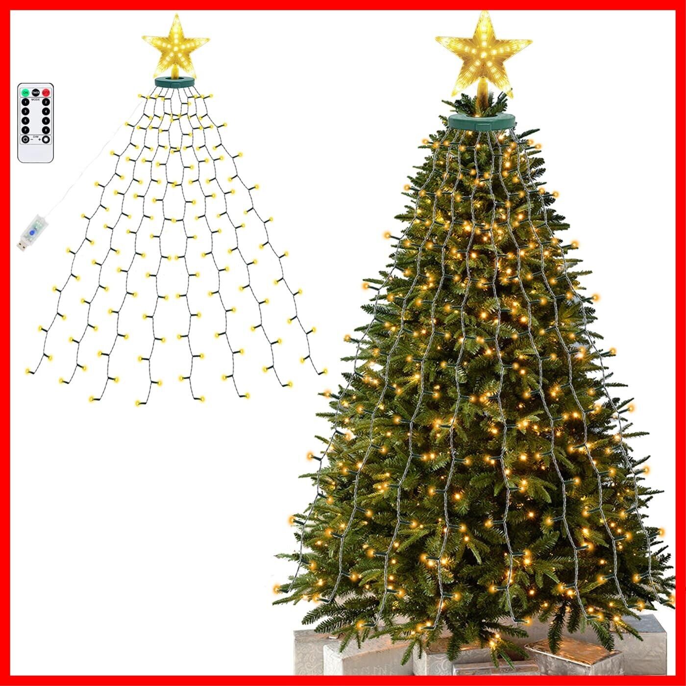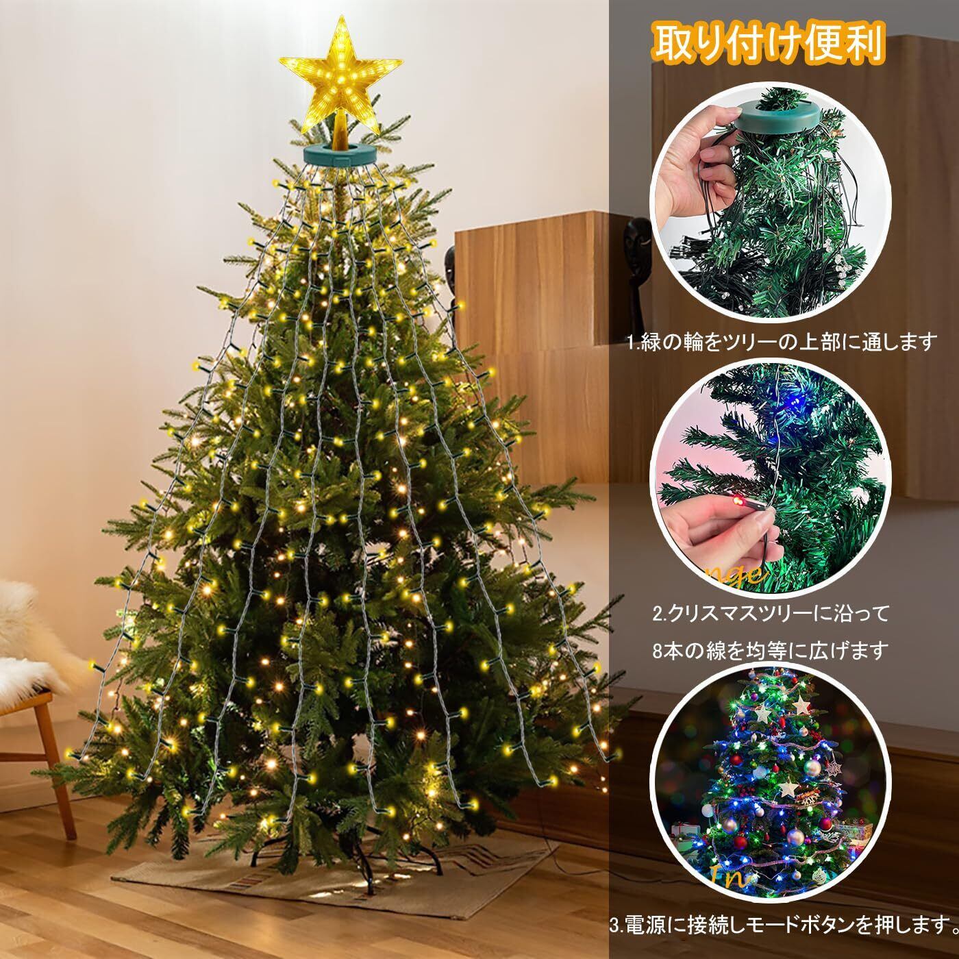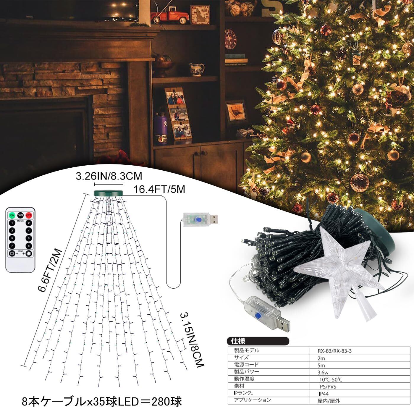 クリスマスツリー イルミネーションライト ストリングライト クリスマスツリー飾りライト 2M 8本 280球 8パターン USB式 メモリー機能 防水 高輝度 LED電飾 クリスマス ドレープライト フェアリーライト クリスマスツリー飾りライト 電飾 防水 クリスマスつりー専用 xmas christmas tree decoration