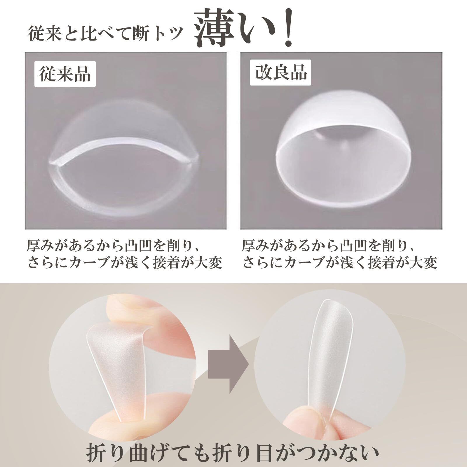 【根元極薄・段差が目立たない】 自爪のように見える極薄設計。段差が気にならずネイル初心者にもおすすめ。