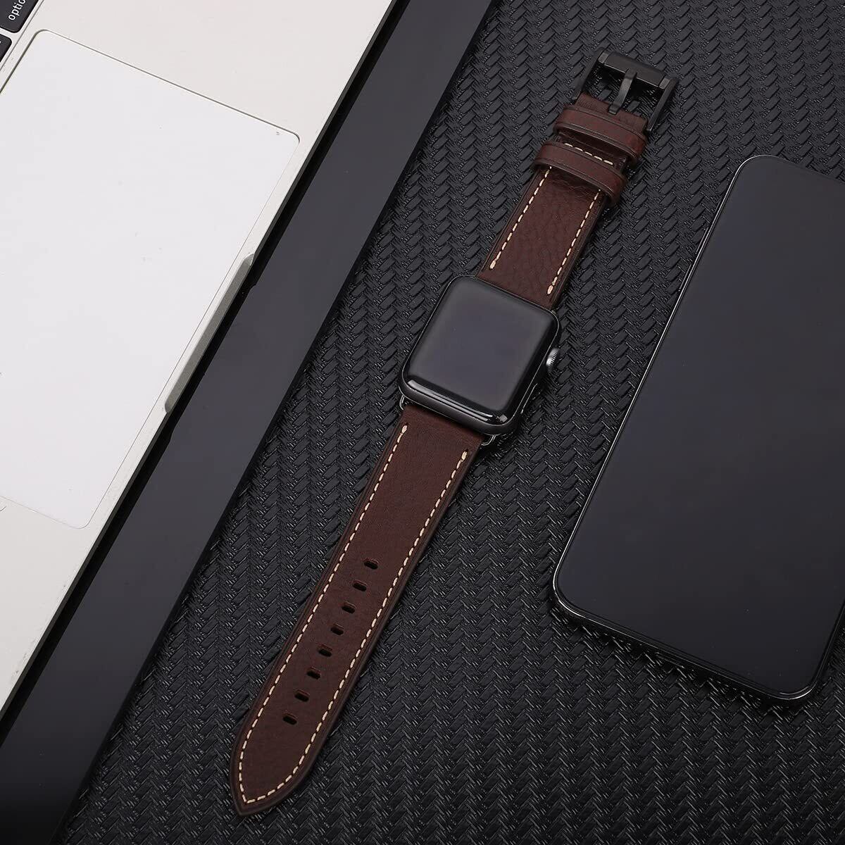 [ANGKMA] Apple Watch 用バンド49mm46mm 45mm 44mm 42mm 本革 交換ベルト Apple Watchシリーズ 10/9/8/7/6/5/4/3/2/1/Ultra対応 (42mm44mm45mm46mm49mm, コーヒーストラップ/ブラックバックル) | hananoki