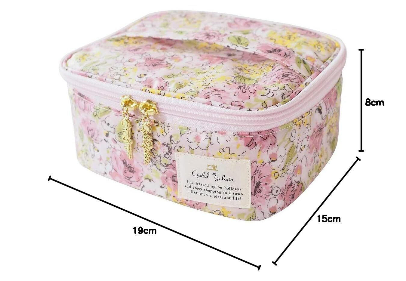 【色々なシーンで使える】フラットタイプの持ち手なのでバッグやスーツケース、キャリーケースの中でもかさばりません。出張や旅行、温泉やジム、イベントの遠征などでのトラベルポーチとして活躍します。家での毎日のお化粧タイムのコスメ収納としても圧迫感が無くて気分の上がる花柄はインテリアに馴染んでおすすめです。他にも文房具やペン類などのステーショナリーやバッテリー充電器、コード類などのガジェット類の収納、裁縫箱やアクセサリー収納、救急箱など小物入れとして多種多様な使い方が出来ます。
