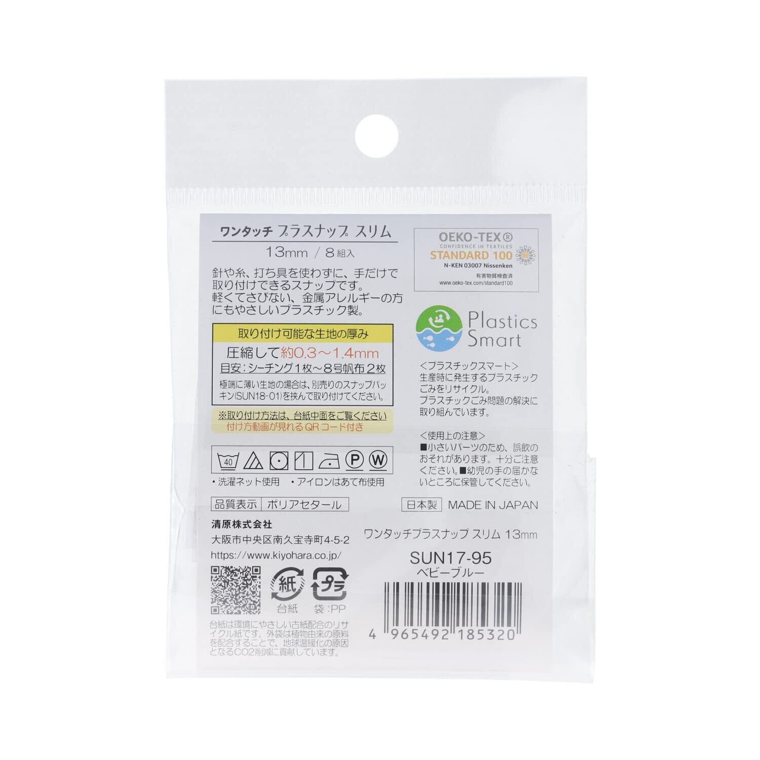 KIYOHARA サンコッコー ワンタッチプラスナップ スリム 8組入 直径13mm ベビーブルー SUN17-95
