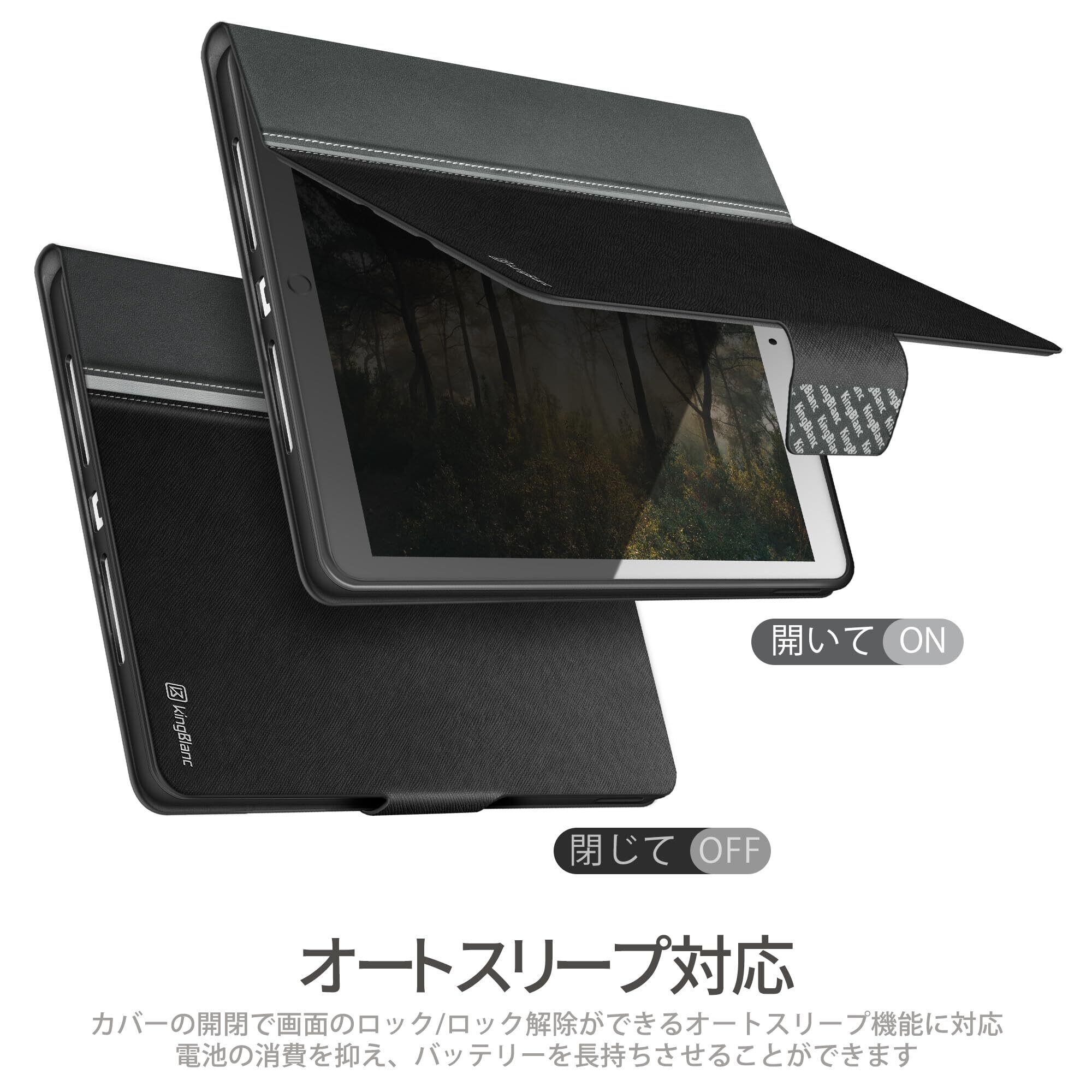 【オートスリープ/ウェイク対応】カバーを開くと画面がついて閉じると消える。iPadケースには欠かせないオートスリープ機能を搭載しています。画面がつきっぱなしになるのを防ぐため電池の節約にもつながります。バッテリーを長持ちさせることができます。