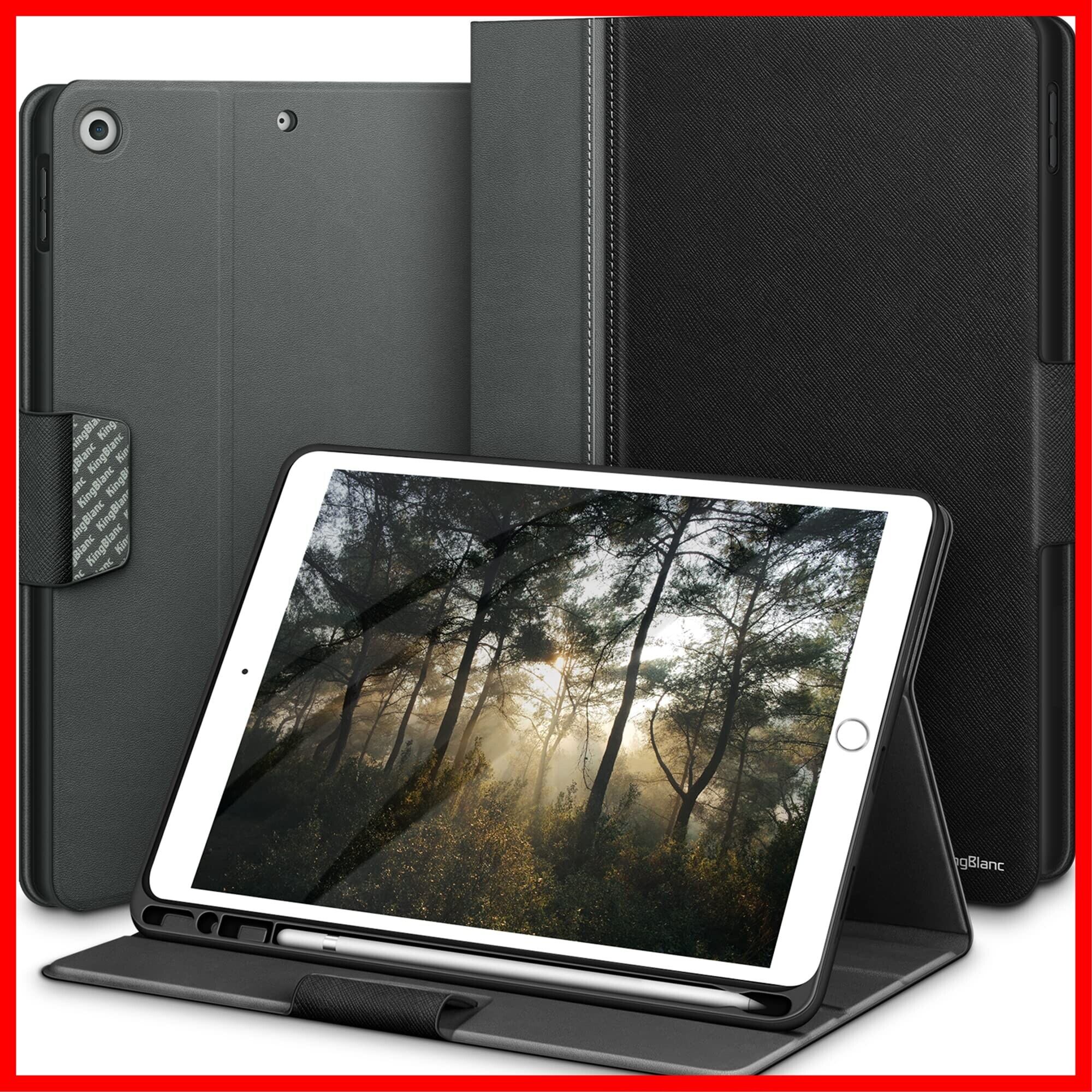 KingBlanc iPad 10.2 ケース 第9世代/第8世代/第7世代 (2021/2020/2019) ケース ペン収納可能 手帳型 全面保護 高級PUレザー製 オートスリープ・スタンド機能付き, ブラック