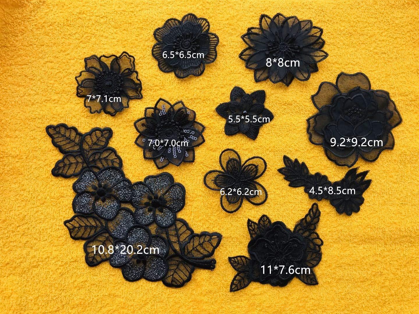 レース生地 刺繍花 縫製 DIY 服 工芸品の装飾 パッチ アップリケ モチーフ 10枚セットNo.16 (ブラック10枚セット②)