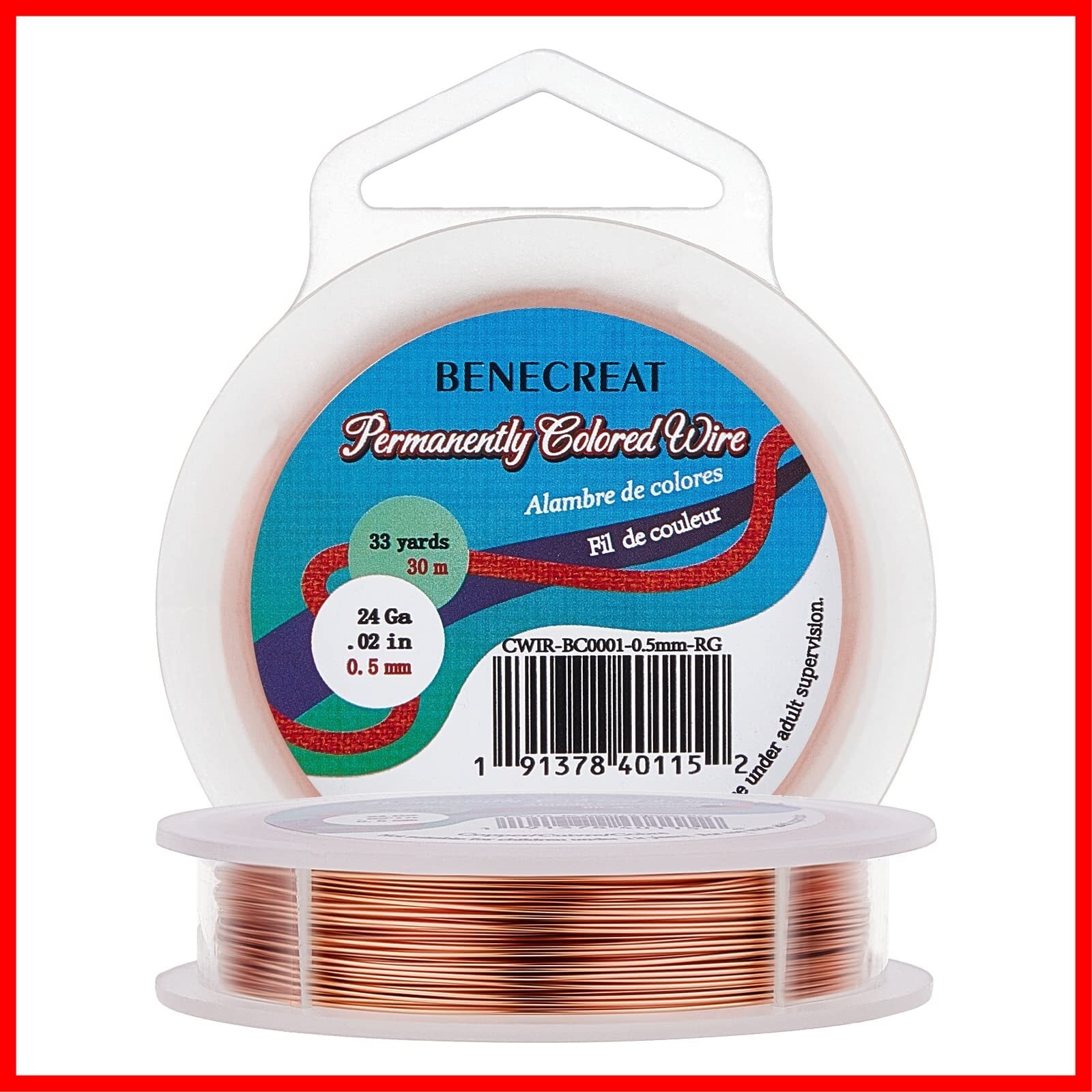 BENECREAT 30m/巻き 線径0.5㎜アクセサリーワイヤー アートワイヤー 光沢 変色防止カッパーワイヤー クラフト銅線 ジュエリー作り 手芸素材 手作り(銅色)