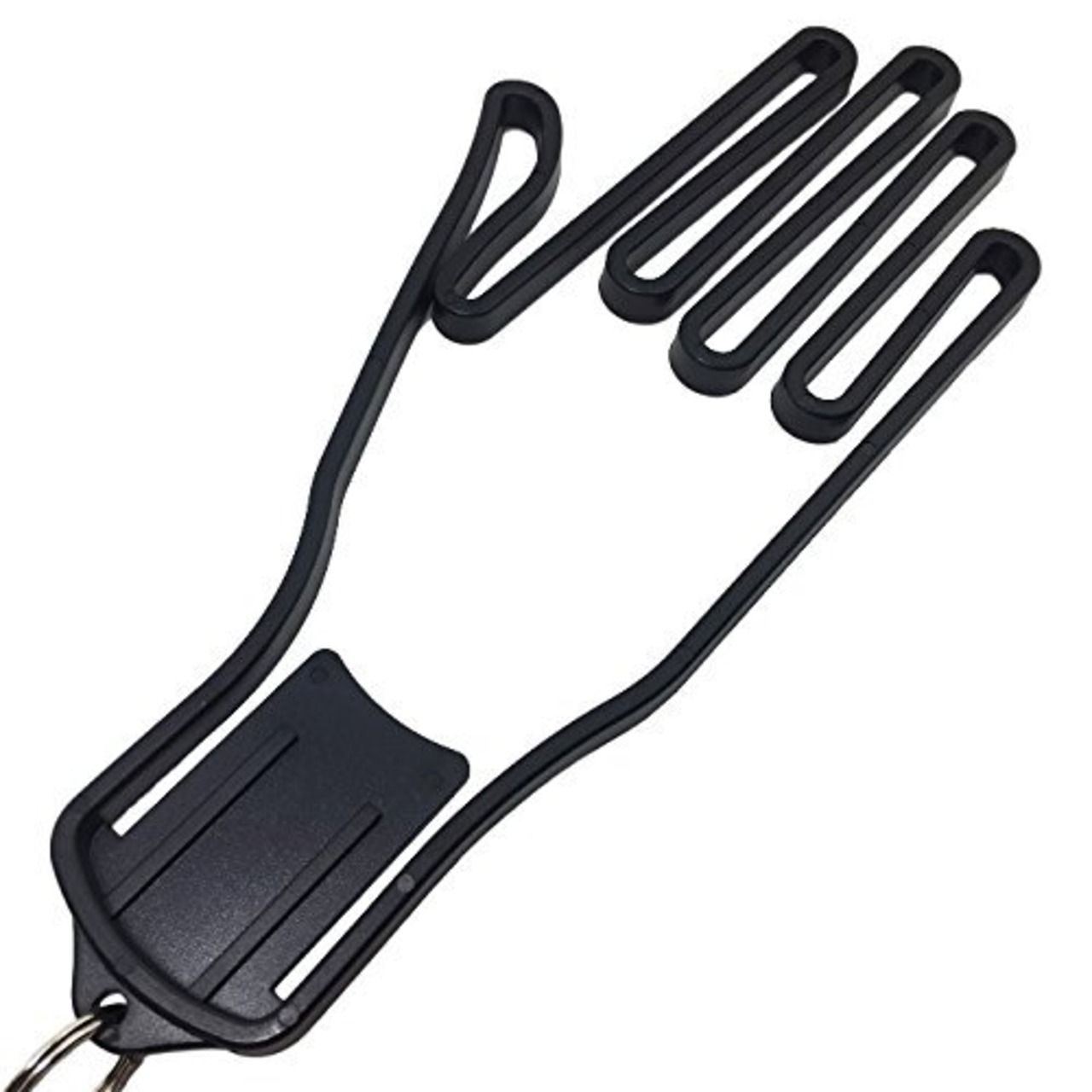 何処でもぶら下げられるようにプッシュ式のキーフックが付属しますのでキャディーバッグやゴルフカートなどに簡単取付可能。手袋に通すことで手袋内に空間を作り、型崩れせず素早く乾燥させる事が可能です。