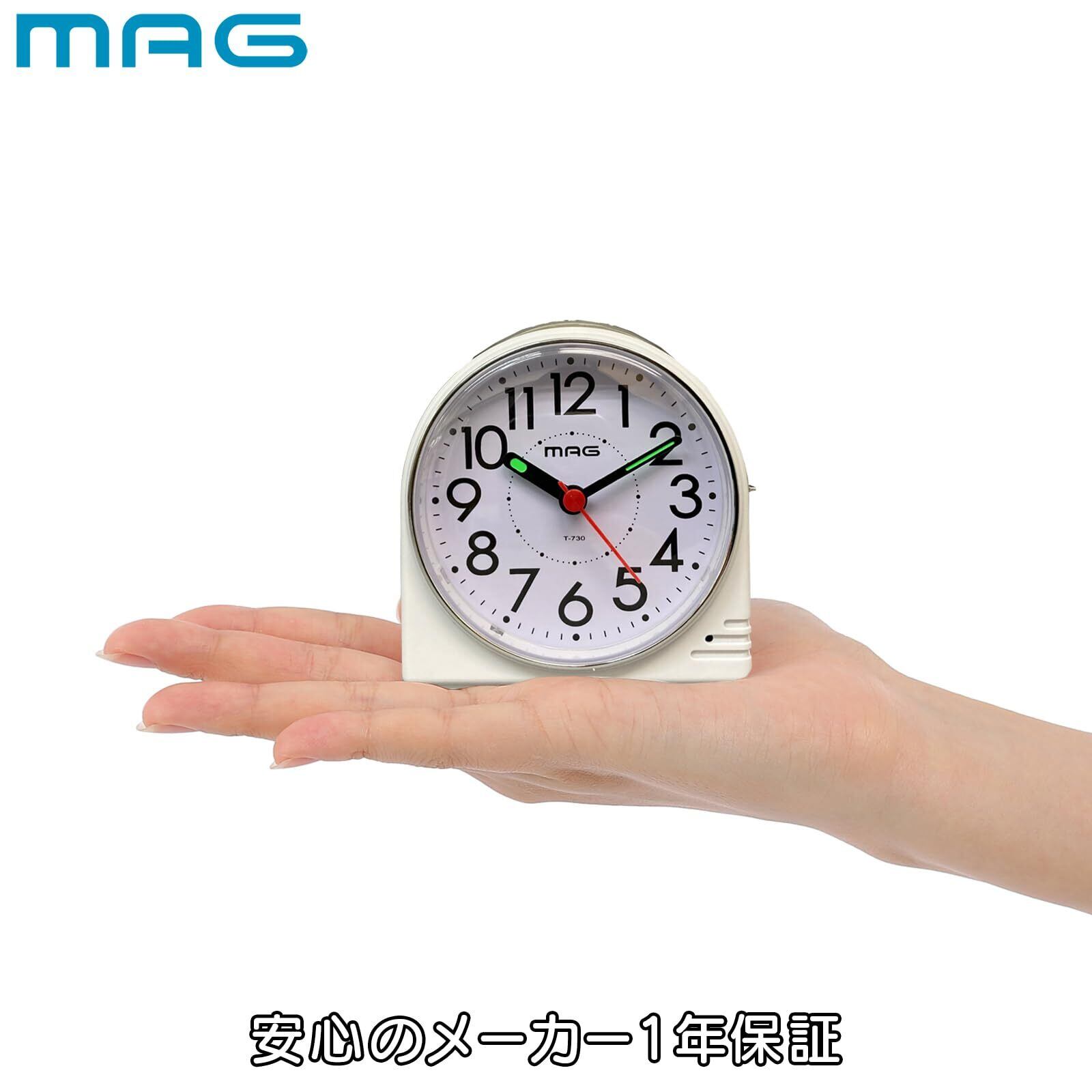 MAG(マグ) 目覚まし時計 置き時計 小型 小さい アナログ 見やすい 静音 連続秒針 電子音 アラーム スヌーズ ライト ホワイト 蛍 AT-730 WH-Z ノア精密