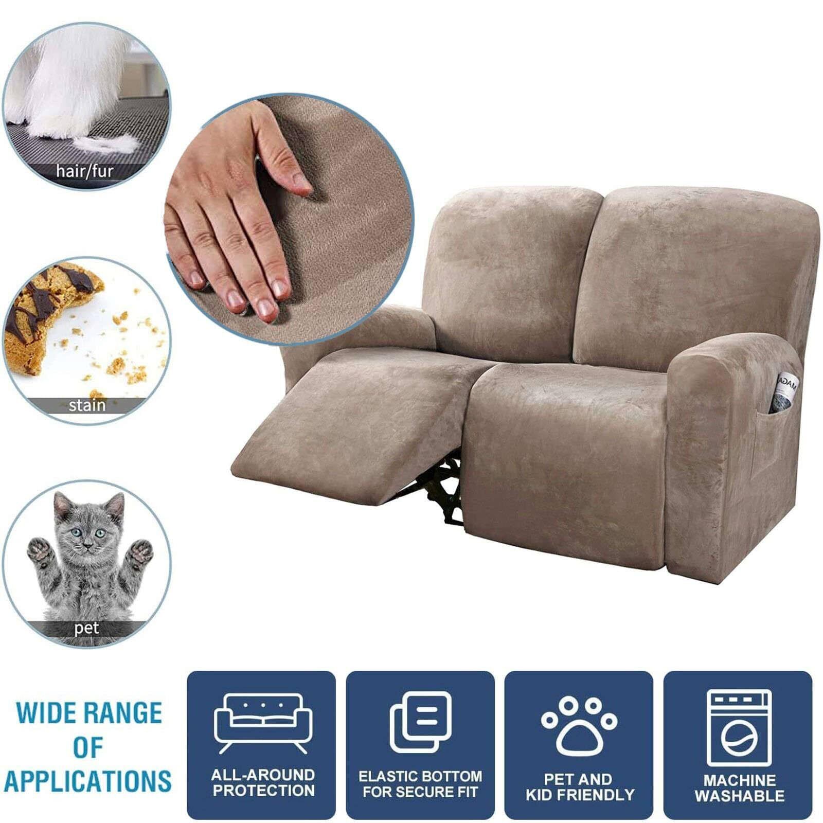 ストレッチ ベルベット リクライニングソファーカバー 2人掛け, 6-分割タイプ 付 サイドポケッ 電動 リクライニングチェア ソファーカバー 滑り止め ソファーカバー に適用する 子 ペット-トープ-2人掛け