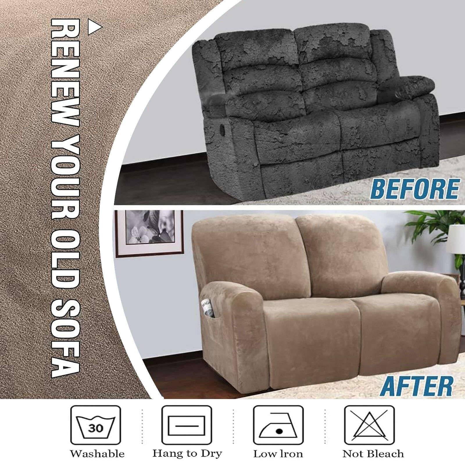 ぴったりフィット: この革新的な 6 Pieces リクライニングチェア ソファカバーは/豪華なベルベットの豪華な生地で作られています., 含む 2 アームピース,2 シートピースのセンターバックと 2 表紙裏中央, 間にソファ幅を合わせる 48-65in(122-165cm). 右側ポケットと連続フットレスト付き.