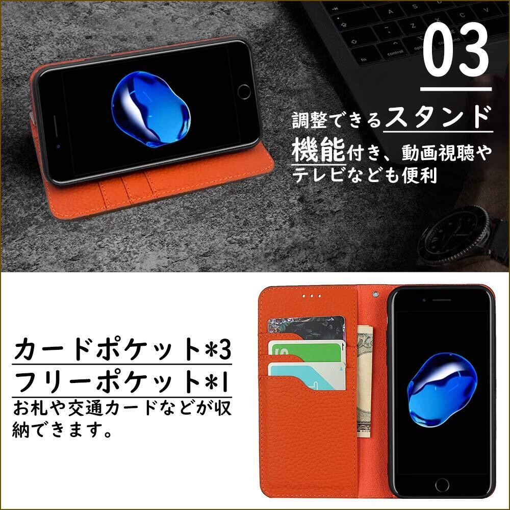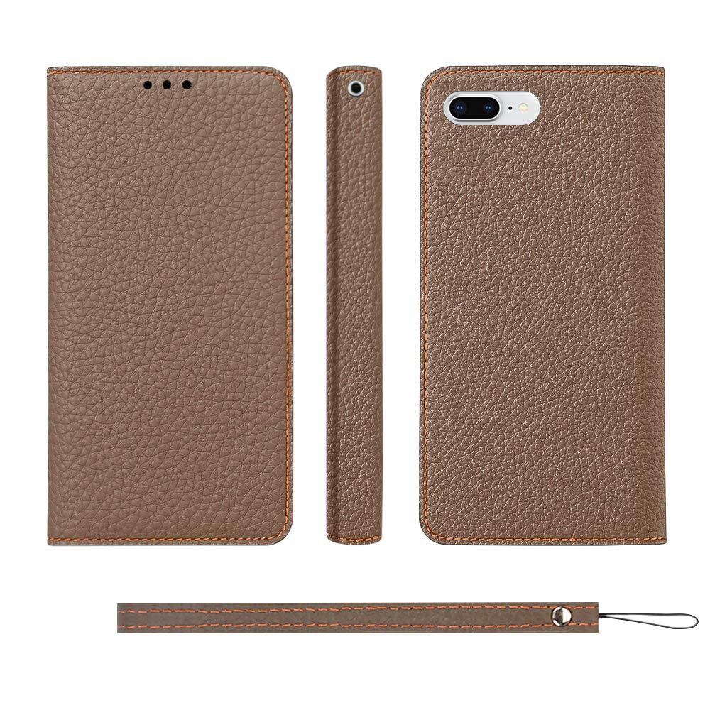 Clicsun iPhone7 Plus/8 plus ケース 高級牛本革ケース 手帳型 アイフォン7プラス/8 プラス カバー 本革 レザー カバー スタンド機能 ストラップ付き マグネット式 カードポケット ギフトボックス付き ブラウン×オレンジ | hananoki