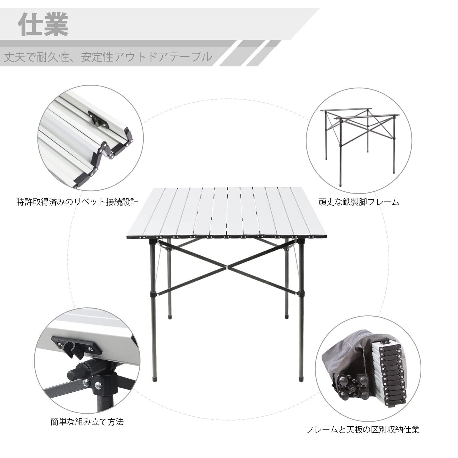 アウトドアテーブル 折りたたみ 70*70*70cm テレワーク 重量4.2kg 耐荷重45kg アルミ ロールテーブル キャンプ bbq 収納袋付き コンパクト 自宅勤務