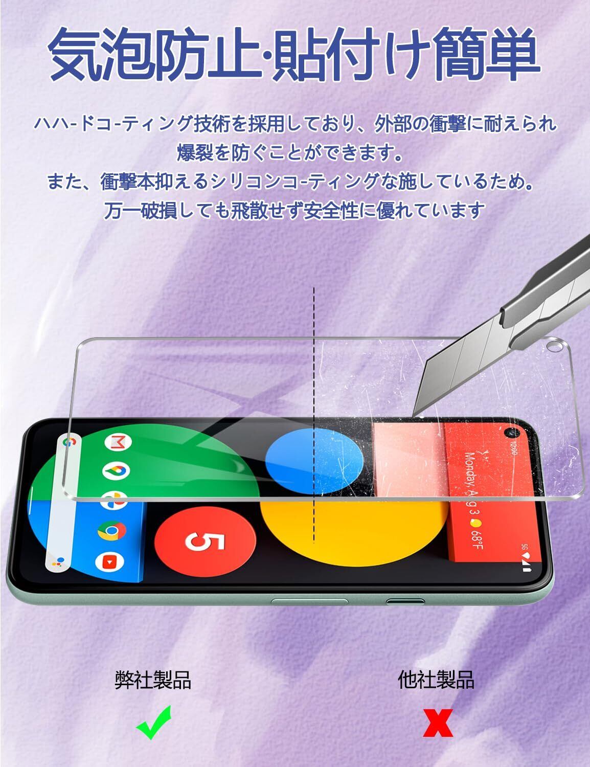 Google Pixel 5 ガラスフィルム- 旭硝子仕様 google pixel5 フィルム 2枚 +pixel5 ガラスフィルムカメラ 2枚 グーグルピクセル 5 用の ガラスフィルム 硬度9H 高 透過率 耐衝撃 飛散防止 傷防止 耐指紋 気泡ゼロ 撥油性 自動吸着