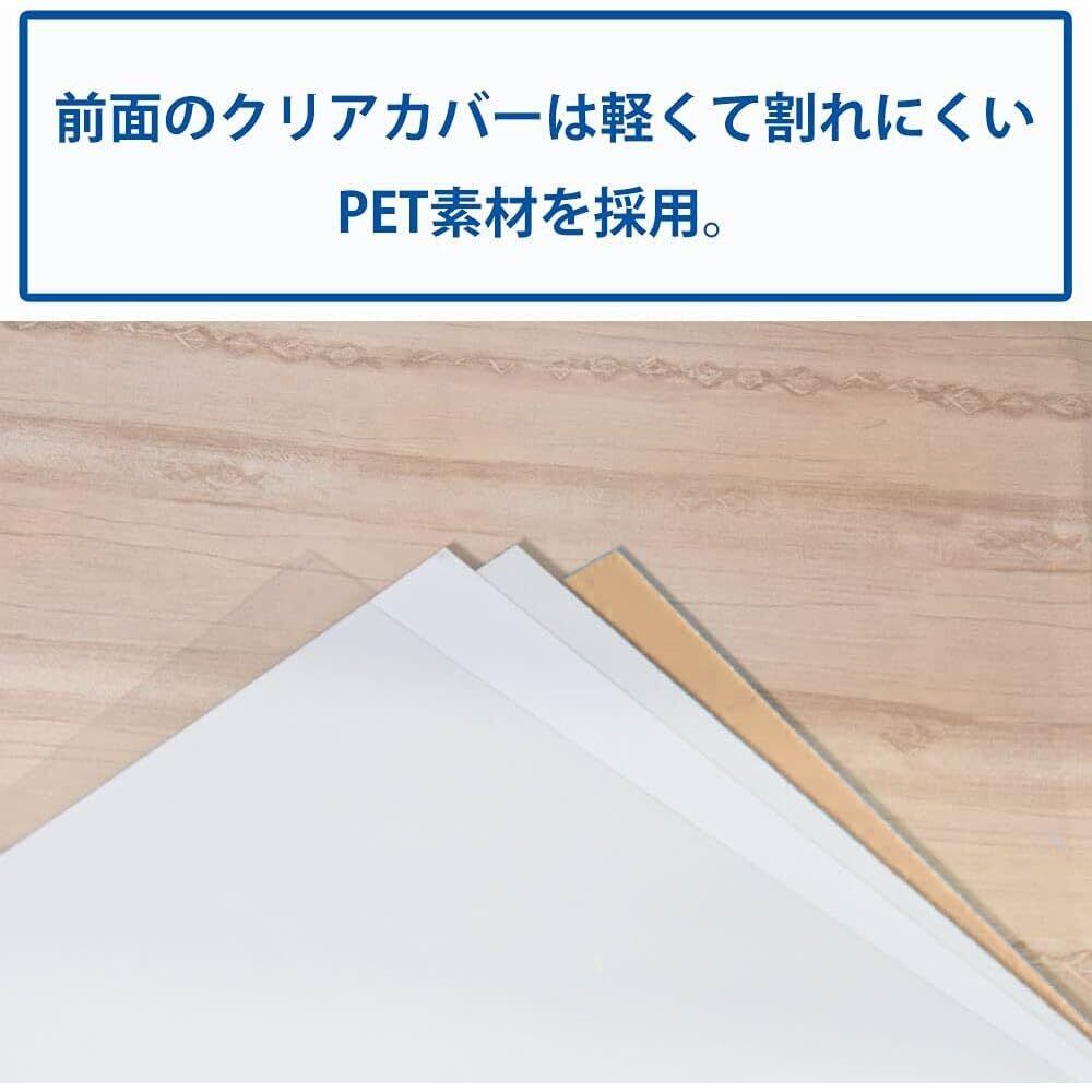 前面のクリアカバーは軽くて割れにくいPET素材を採用。飾るものをしっかり保護します。