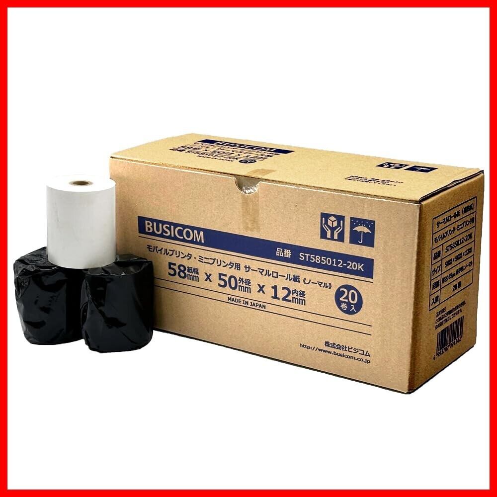 ビジコム純正 サーマルロール紙 【三菱製紙・国産】 58mm幅×外径50φ×内径12mm 芯あり ノーマル保存 スター精密mPOP・mC-Print2プリンタ対応 (58mm幅×50φ×12mm【20巻入】)